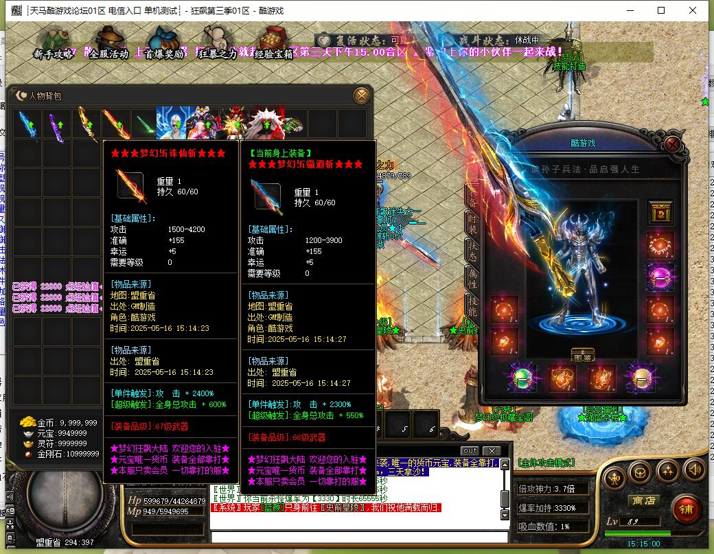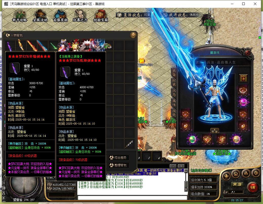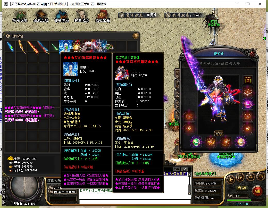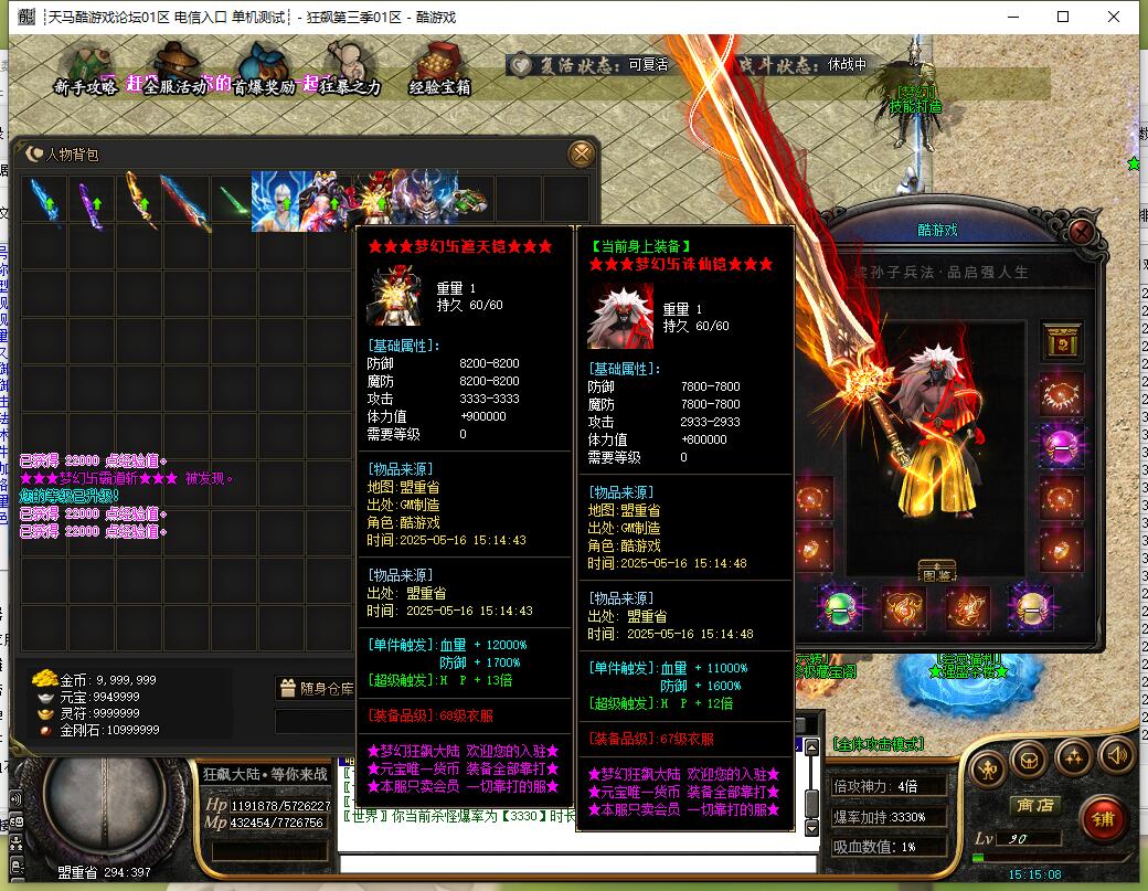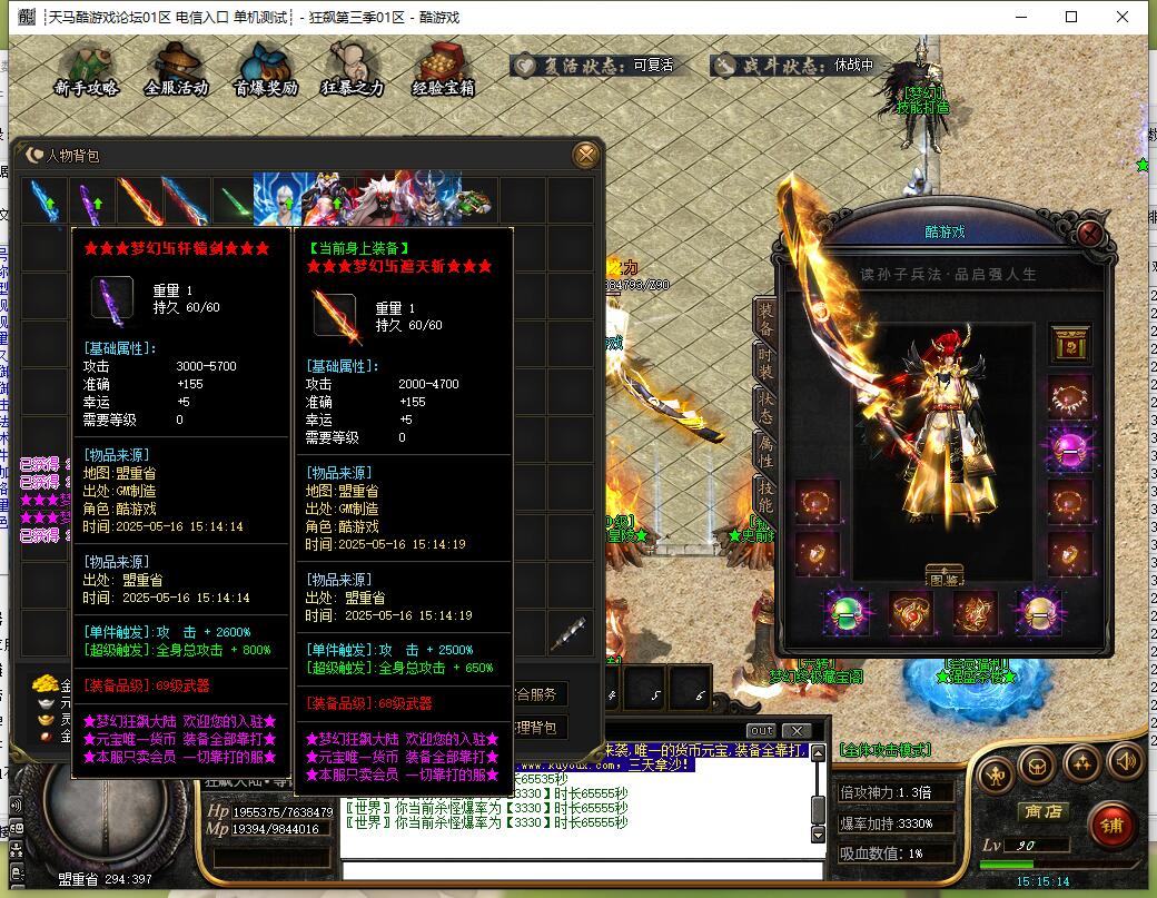 本服剑甲首饰无任何合成,全部靠打,不控爆率!65套装备,850件倍攻神器!