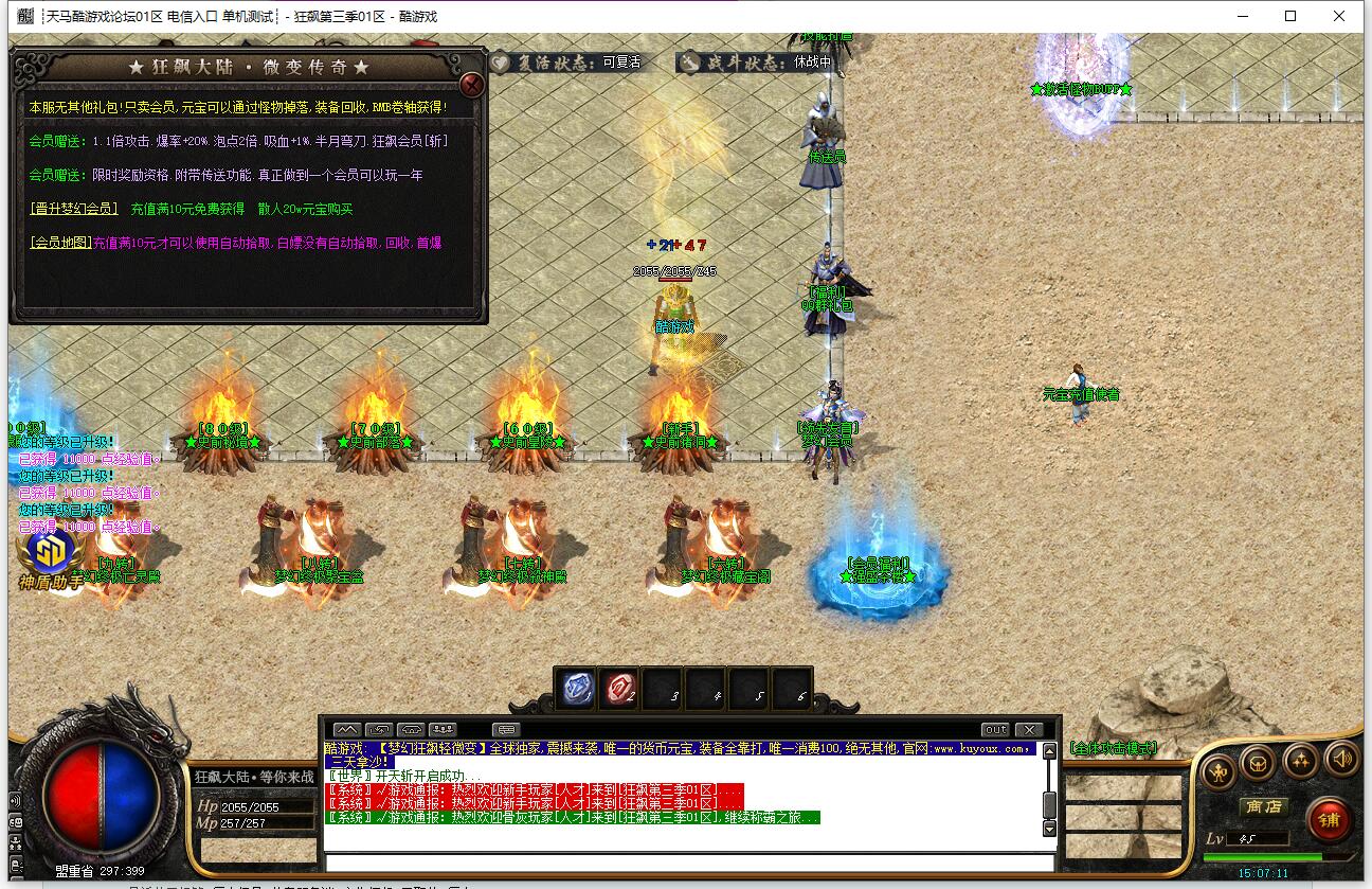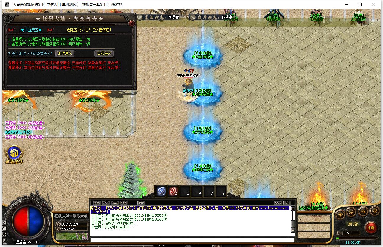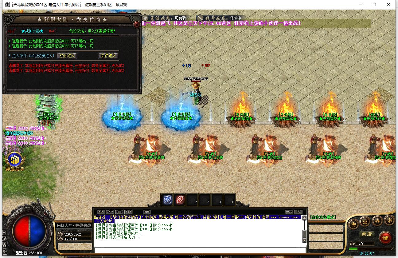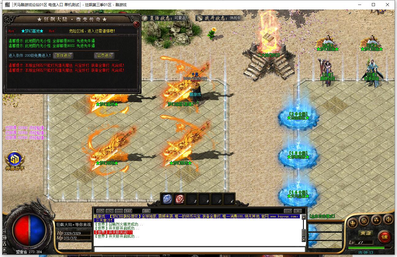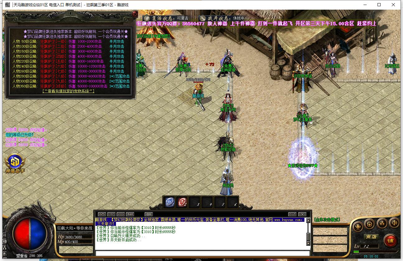 本服上线赠送召唤宠物技能,根据人物等级提升等级,后期宠物3*3范围攻击!