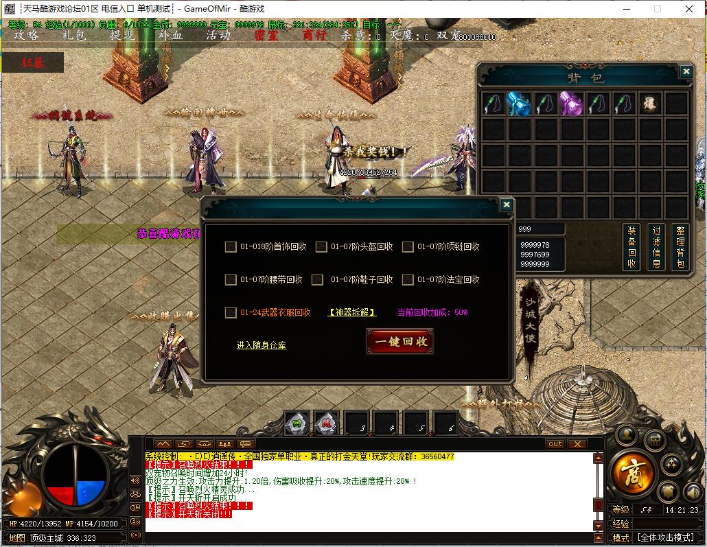 几十件装备游戏自助永久回收,合区爆率不关,最要紧是无限量。