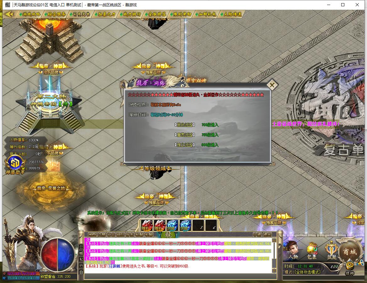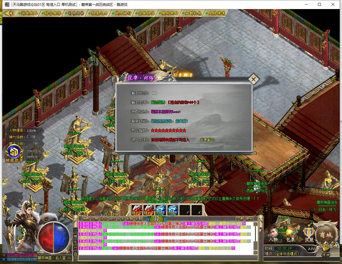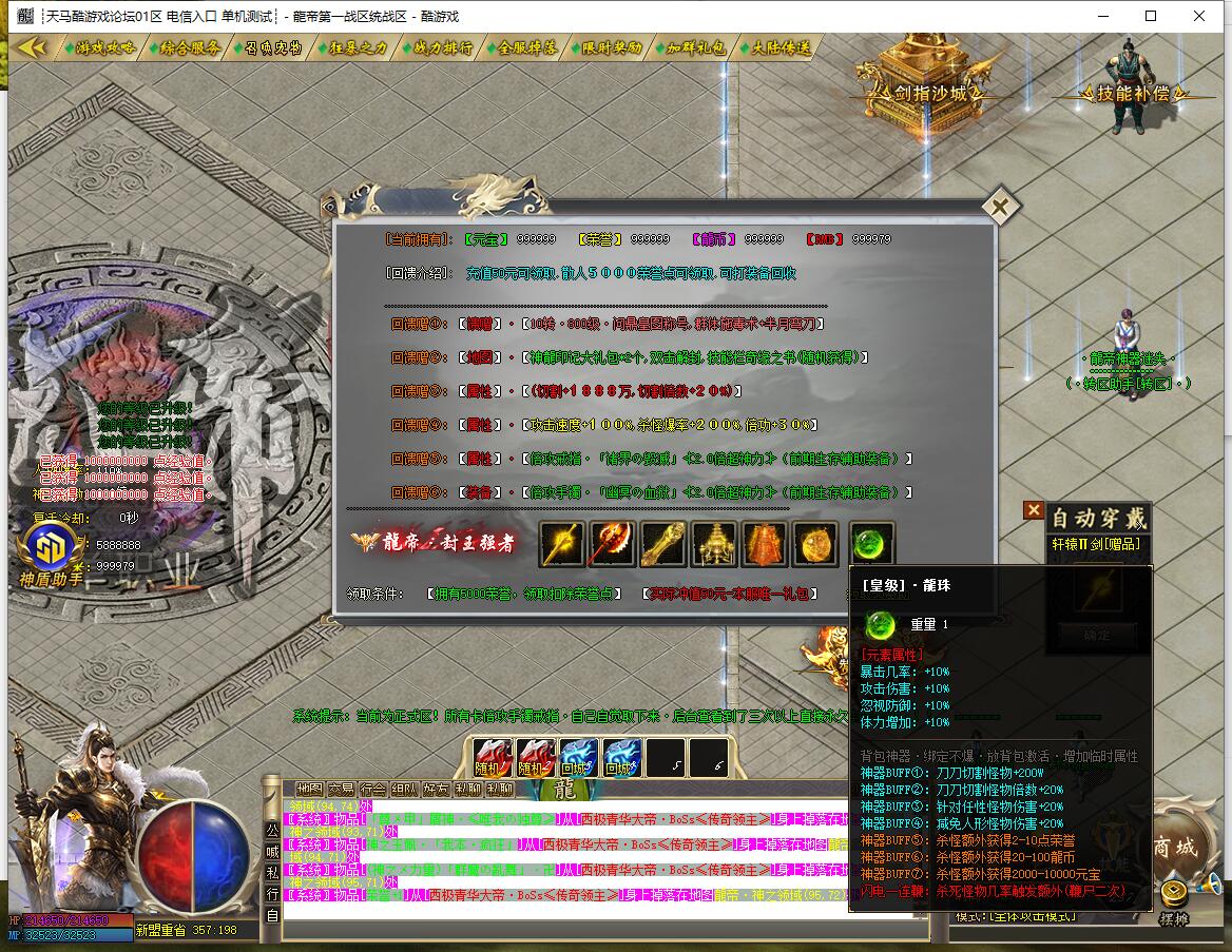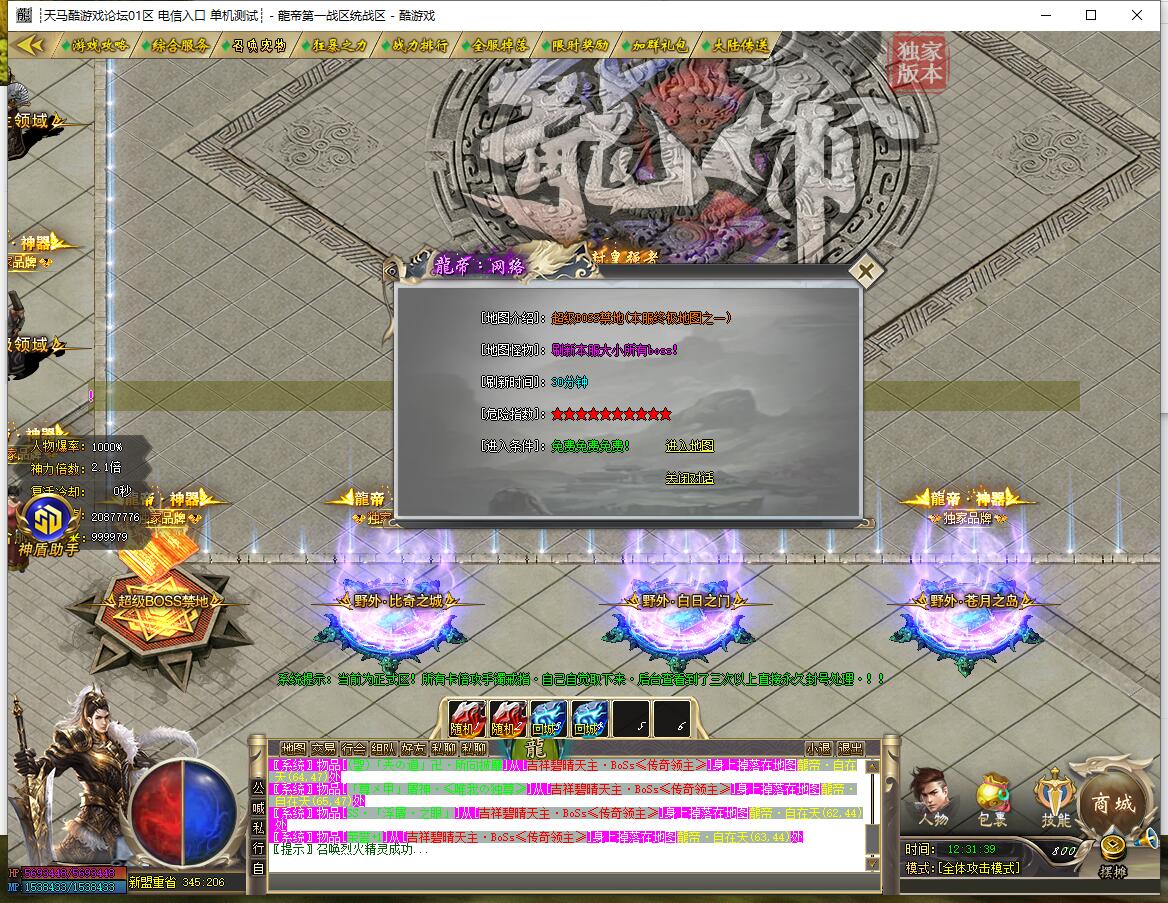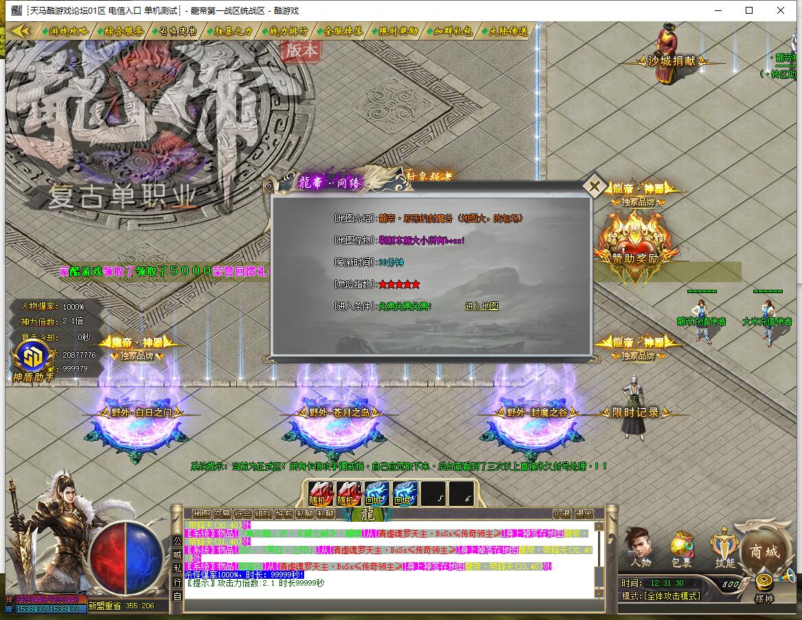 全民火龙单职业微变版本,纯散人服不花钱也可终极,一切靠打无合成,散人打金地图多怪物刷新速度快,装备货币保值,每日人品大爆发轻松300+收入。每天稳定四区开放(10:30 14:30 18:30 22:30),每个地图终极福利BOSS每晚22:01刷新,首区攻沙奖励RMB 588无封顶。市场最强封挂系统24小时接受举报,提醒设置二级密码防扫号。适度游戏益脑,拒绝盗版,享受健康生活。