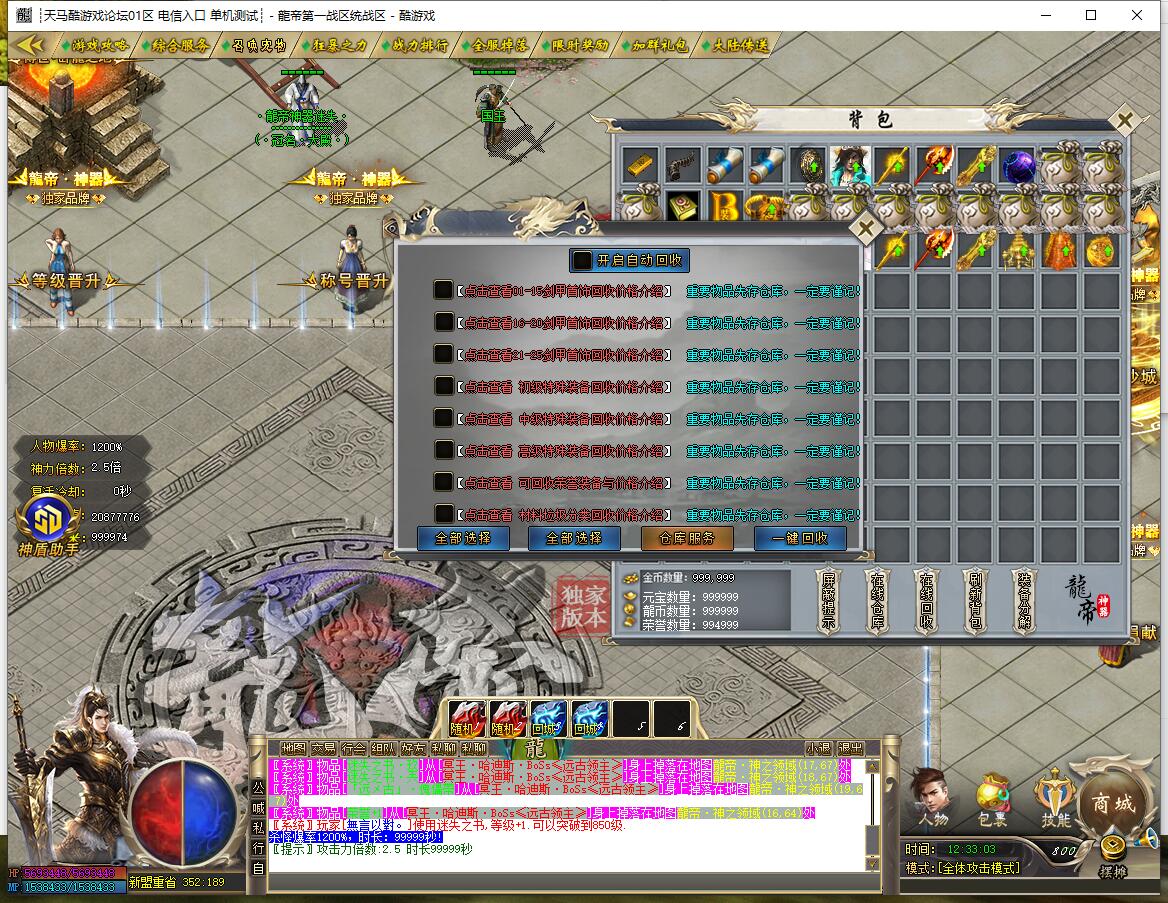 本服还原干净聊天框,无垃圾信息及回收提示,商铺不售材料全靠打怪,永久回收物品均由怪物爆出。游戏问题可QQ群联系客服完美解答,无论是否消费均用心服务,所有玩家公平对待。交易安全需通过商铺RMB点交易,提现手续费仅10%;私下交易一经查实封号并清除提现记录;禁止自动刷屏、骂人小号占安全区,违者警告或封号;严禁加速脱机外挂,发现必删永不解封。