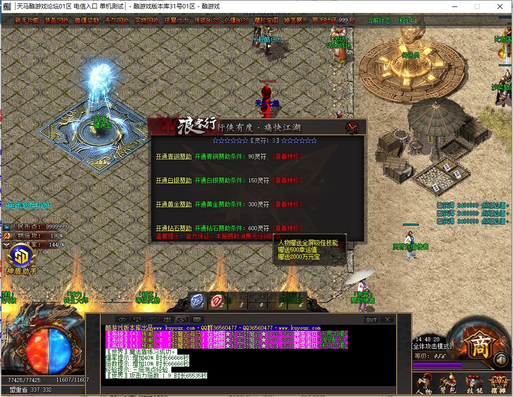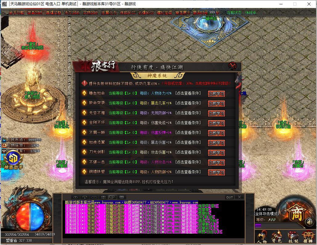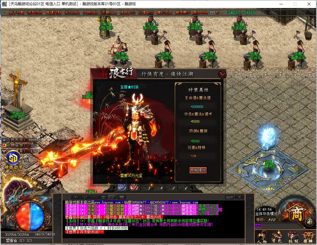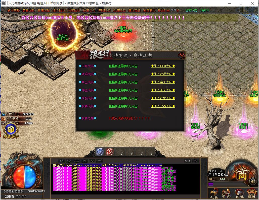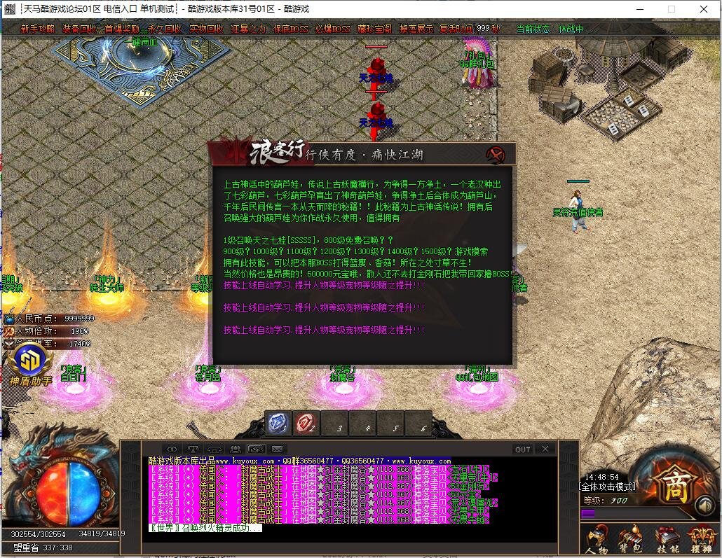 全民火龙单职业微变版本,纯散人服不花钱也可终极,一切靠打无合成,散人打金地图多怪物刷新速度快,装备货币保值,每日人品大爆发轻松300+收入。每天稳定四区开放(10:30 14:30 18:30 22:30),每个地图终极福利BOSS每晚22:01刷新,首区攻沙奖励RMB 588无封顶。市场最强封挂系统24小时接受举报,提醒设置二级密码防扫号。适度游戏益脑,拒绝盗版,享受健康生活。