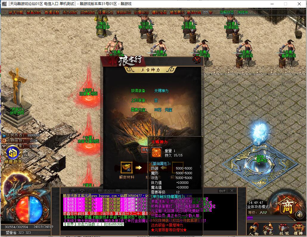 迷失单职业[独家版本激情无限]是一款人气大服传奇游戏,装备、等级轻松获取,上线即可直接PK,无需充值,不花一分钱即可畅玩,支持无线刷元宝、无充值直接领取顶赞,封挂稳定长期,采用无GM管理模式。QQ①群:易玩版本库。抵制不良游戏,拒绝盗版游戏,注意自身保护,谨防受骗上当,适度游戏益脑,沉迷游戏伤身,合理安排时间,享受健康生活。