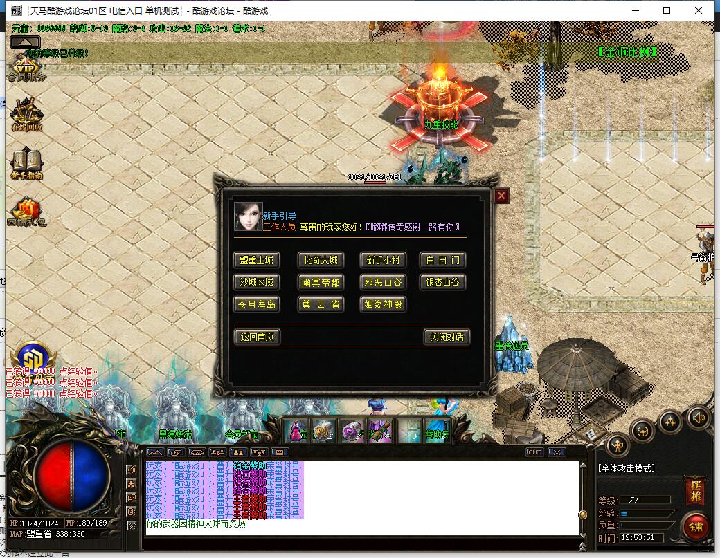 使用客户端连接服务器,创建角色并测试游戏功能是否正常