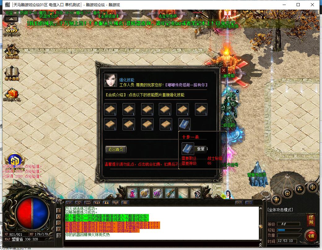 升级介绍:时间多的散人玩家可以通过打怪升级