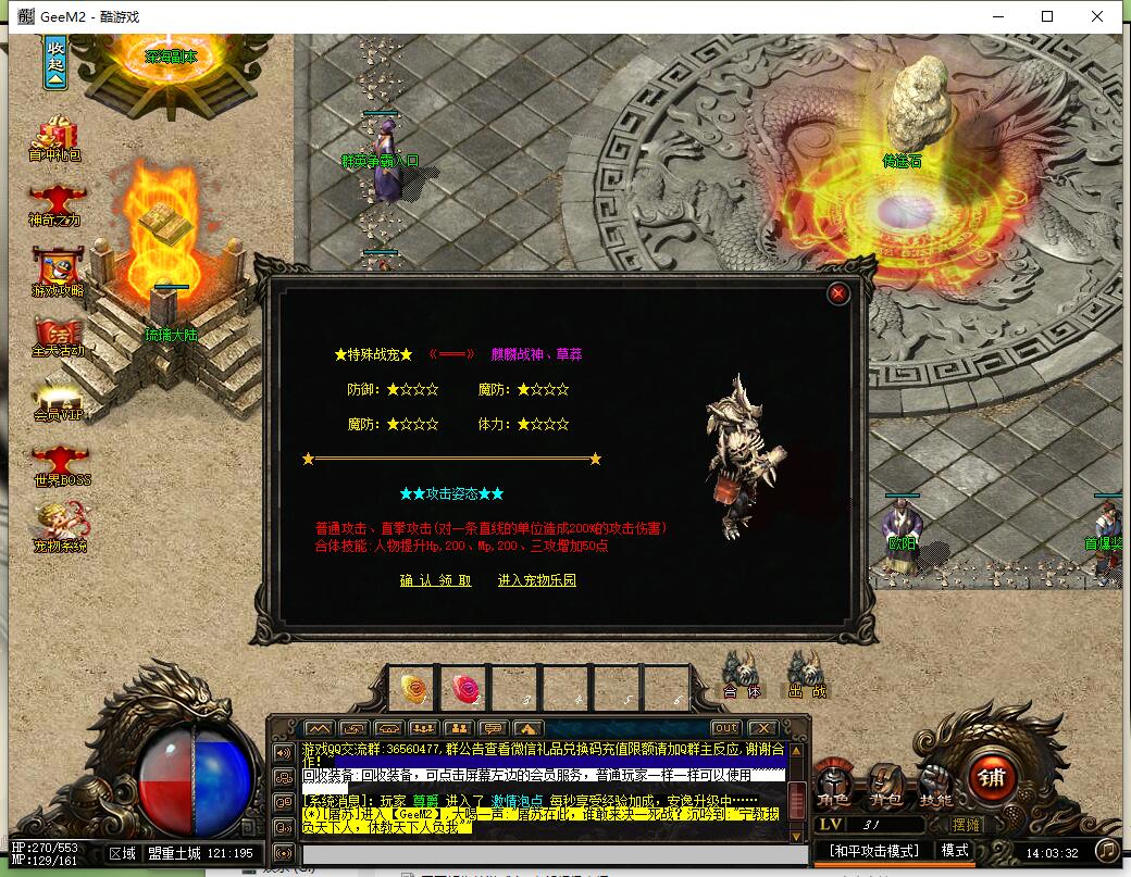 道士职业可召唤两只强力宝宝,50到90级期间每10级升级一次,宝宝威力惊人,是打BOSS的必备利器!道士70级可学习新技能战神之弓,威力媲美宠物。宠物系统三职业通用,在宠物乐园打仙草晋级,战斗力爆表!称号系统提升击杀怪物爆率加成,让打宝更轻松!