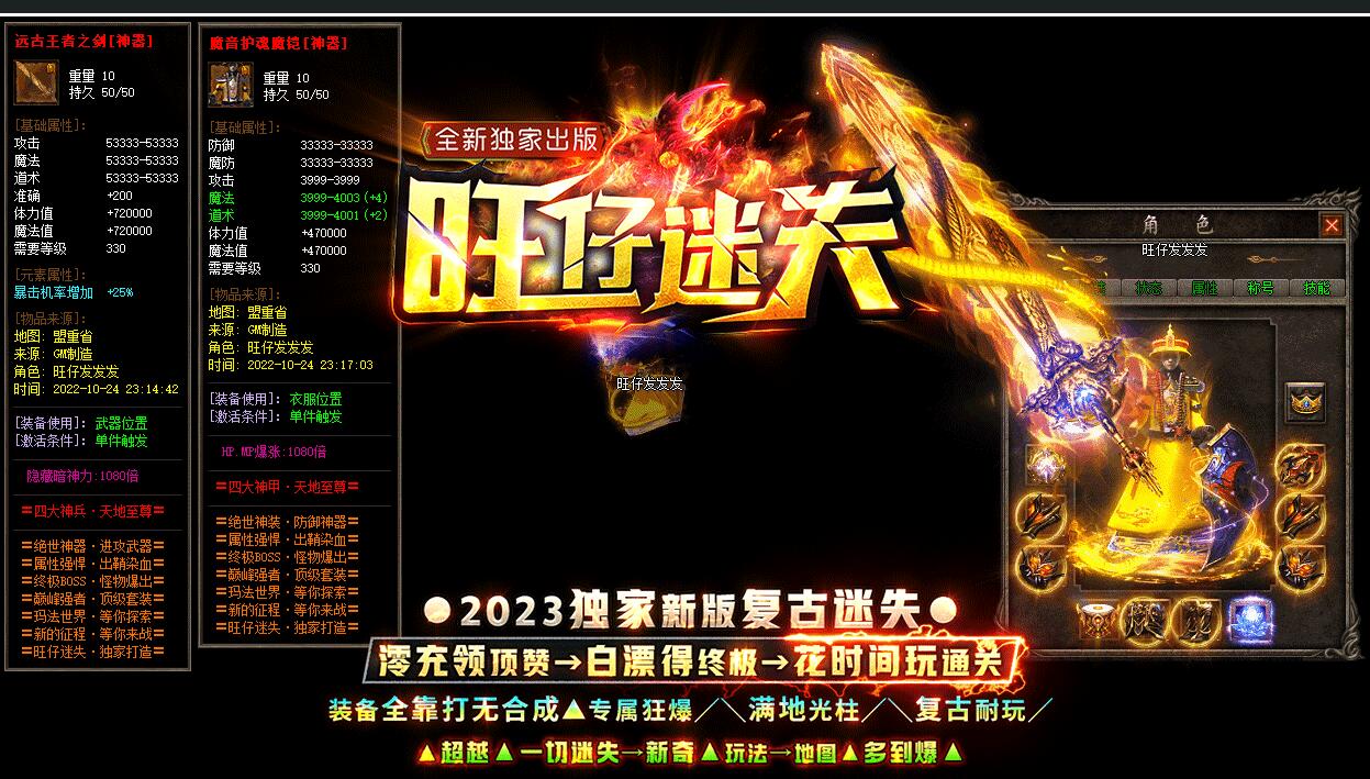 2024独家全新传奇版本,巨资推广专注人气聚集,充值比例1:1公平消费。每日五区滚动开放(10:30/13:30/16:30/19:30/22:30),新区火爆人气爆棚。全装备怪物爆率无保留,物品来源完全透明,公平爆装系统;重金定制GK反外挂系统,全面封禁外挂/加速/辅助,打造绿色公平环境。每日五区连开人气霸屏,次日合区第三天统一攻沙,激情PK体验。装备全靠野外爆出无商城售卖,投入时间可享爆装乐趣与收益;每日重金广告投放,主播平台+发布站全渠道推荐高人气保障。郑重声明:无充值比例/优惠不卖装备,公平无黑幕;防盗提示:不设二级密码保护账号安全谨防诈骗。