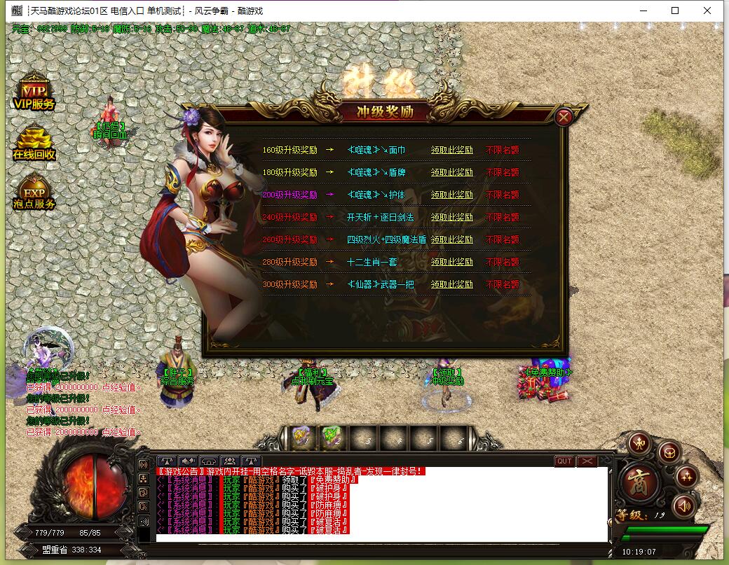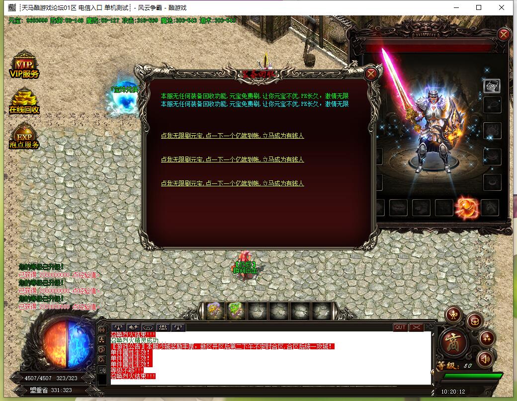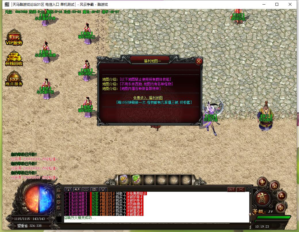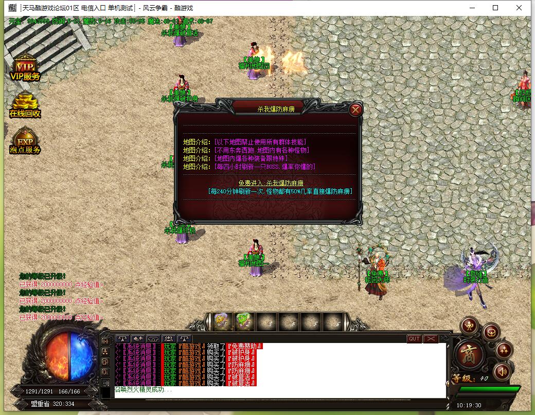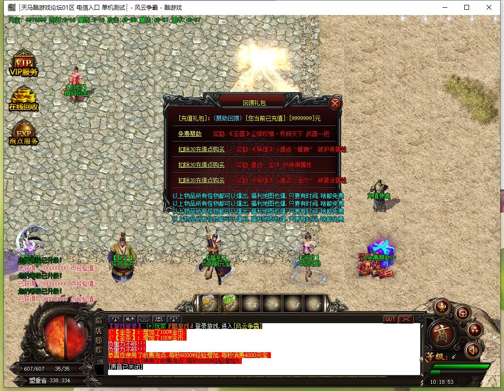 本服还原干净聊天框,无垃圾信息及回收提示,商铺不售材料全靠打怪,永久回收物品均由怪物爆出。游戏问题可QQ群联系客服完美解答,无论是否消费均用心服务,所有玩家公平对待。交易安全需通过商铺RMB点交易,提现手续费仅10%;私下交易一经查实封号并清除提现记录;禁止自动刷屏、骂人小号占安全区,违者警告或封号;严禁加速脱机外挂,发现必删永不解封。