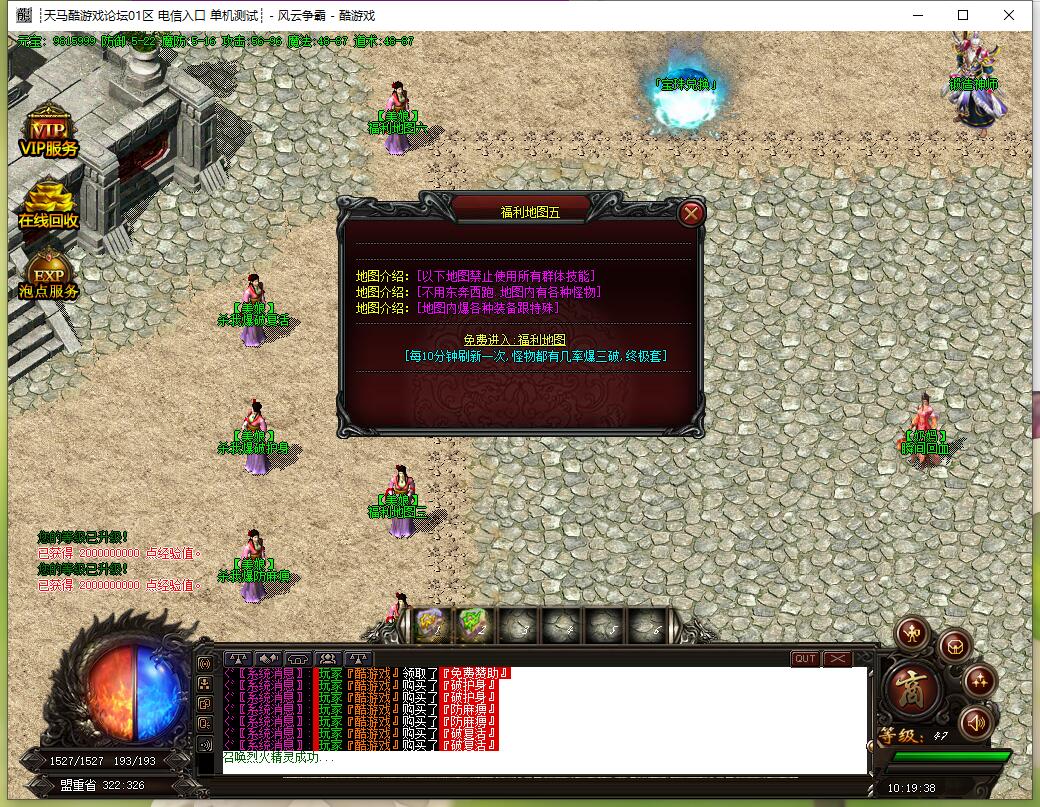 全民火龙单职业微变版本,纯散人服不花钱也可终极,一切靠打无合成,散人打金地图多怪物刷新速度快,装备货币保值,每日人品大爆发轻松300+收入。每天稳定四区开放(10:30 14:30 18:30 22:30),每个地图终极福利BOSS每晚22:01刷新,首区攻沙奖励RMB 588无封顶。市场最强封挂系统24小时接受举报,提醒设置二级密码防扫号。适度游戏益脑,拒绝盗版,享受健康生活。