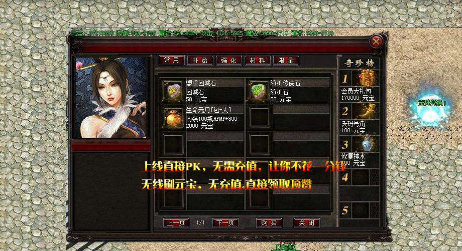 本游戏是人气大服,装备、等级?不是事儿!上线直接PK,无需充值,让你不花一分钱。无线刷元宝,无充值,直接领取顶赞。