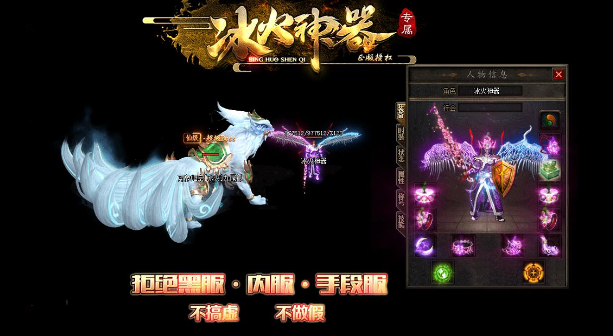 BOSS层次:「鸿蒙」『双倍爆率』『三倍爆率』『六倍爆率』『二十倍爆率』「毁灭」「神王」【上古凶兽】九尾狐,爆率超高属于终极怪物。备注:【迷宫】这三只怪物属于专属怪,只有在切割专属地图和BOSS集中营才能遇见。小怪也爆本服终极装备,就看你运气。从「毁灭」开始也上怪物开始爆本服特殊。