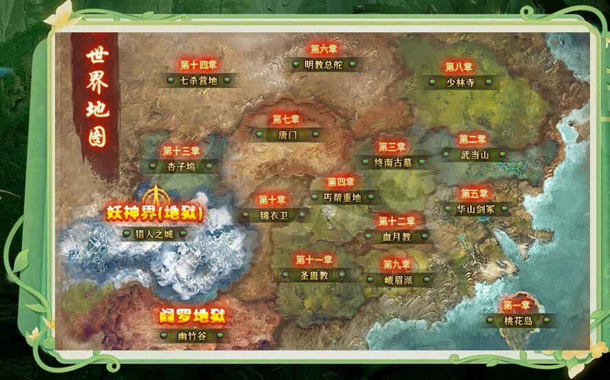 杀猫逐鹿出新村 斩妖除魔入盟重 近观绿涛汇碧海 远眺青山有苍松