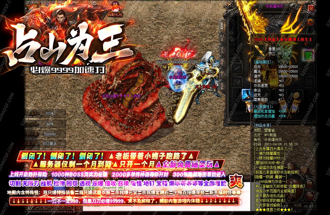全民火龙单职业微变版本,纯散人服不花钱也可终极,一切靠打无合成,散人打金地图多怪物刷新速度快,装备货币保值,每日人品大爆发轻松300+收入。每天稳定四区开放(10:30 14:30 18:30 22:30),每个地图终极福利BOSS每晚22:01刷新,首区攻沙奖励RMB 588无封顶。市场最强封挂系统24小时接受举报,提醒设置二级密码防扫号。适度游戏益脑,拒绝盗版,享受健康生活。