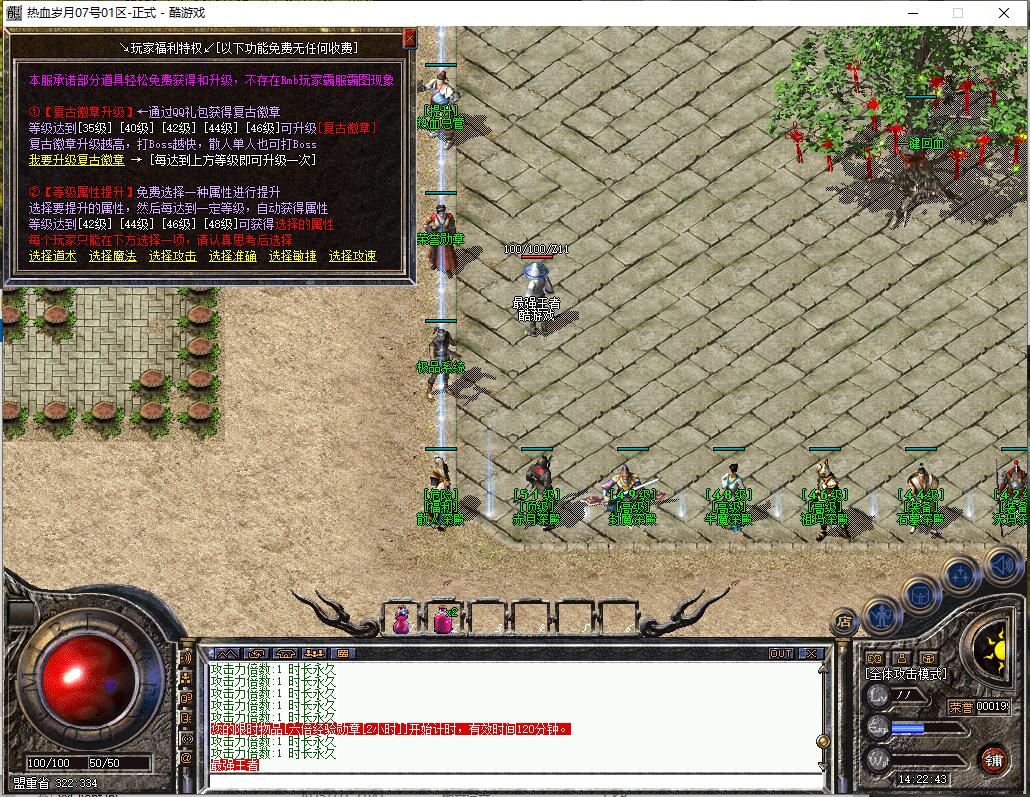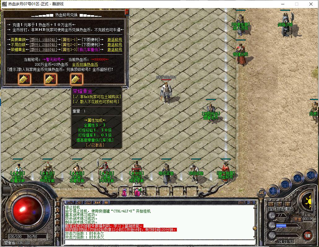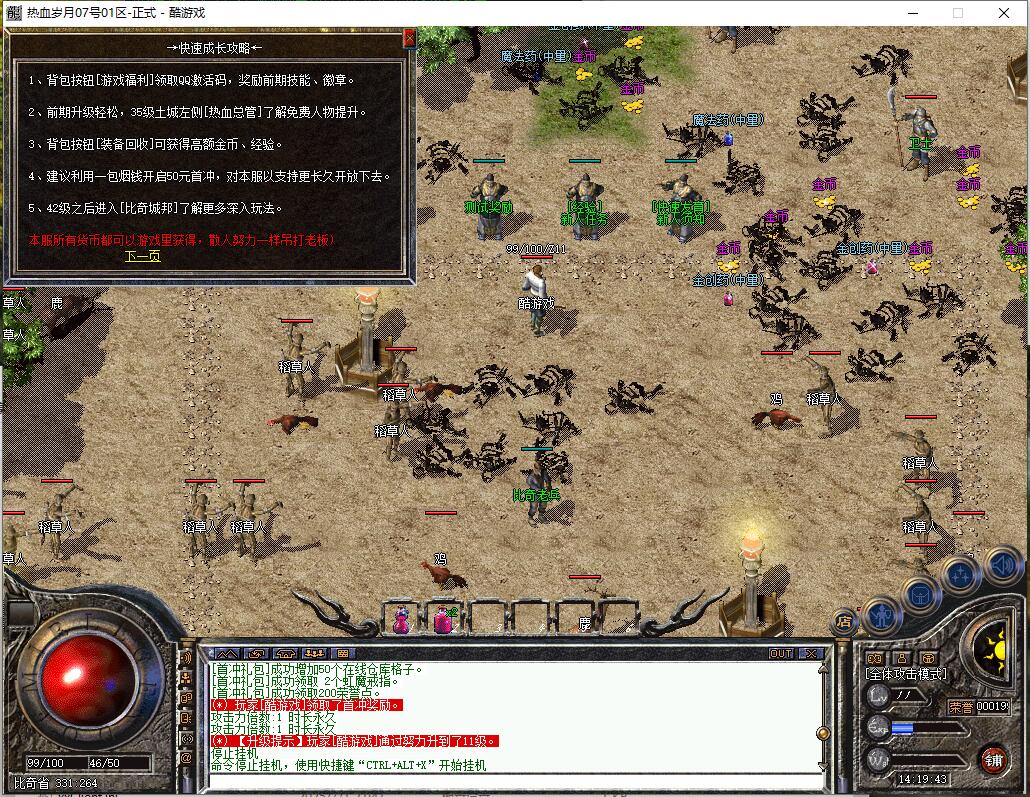 散人玩家的天堂!这是一个半公益性质的1.76版本,地图后面新增一层隐藏地图,小极品+6。所有物品均靠打怪获得,绝对不坑。采用1.76金币复古金币玩法,充值比例1:10W,适合所有复古玩家。爆率全开,经过多年总结,加入众多复古特色玩法,骨灰玩家和充值大佬都能玩得爽。散人玩家有充分发展空间,所有物品游戏中获得。本服无任何待遇,纯散人服,游戏公平一切靠打,重点是无GM!