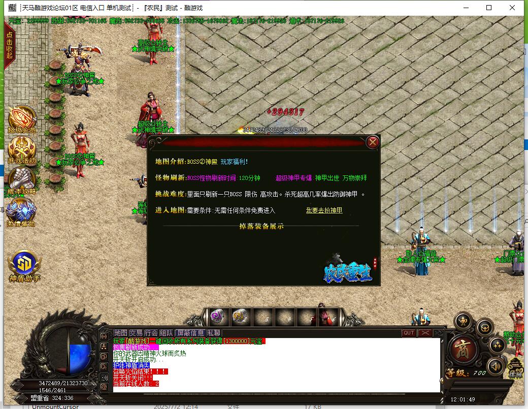 全民火龙单职业微变版本,纯散人服不花钱也可终极,一切靠打无合成,散人打金地图多怪物刷新速度快,装备货币保值,每日人品大爆发轻松300+收入。每天稳定四区开放(10:30 14:30 18:30 22:30),每个地图终极福利BOSS每晚22:01刷新,首区攻沙奖励RMB 588无封顶。市场最强封挂系统24小时接受举报,提醒设置二级密码防扫号。适度游戏益脑,拒绝盗版,享受健康生活。
