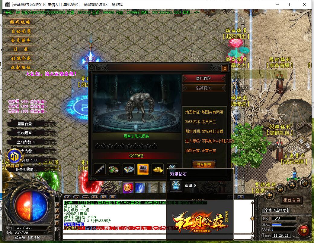 PS:钻石超好打!越后面地图爆钻越多,轻松起号。福利BOSS能打必打,出所有技能书、特殊十步BUFF,必出复活宝石!