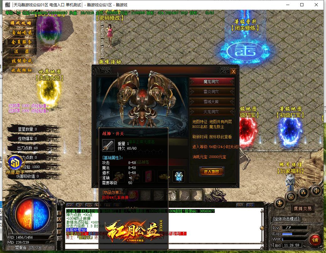 - 散人玩家:上线直接泡点到40级,下地图找BOSS拿首杀、首爆;45级后领升级奖励,前期直接获得一重特殊(至关重要);根据等级下地图到60级转生,下一转地图直接爆火龙。