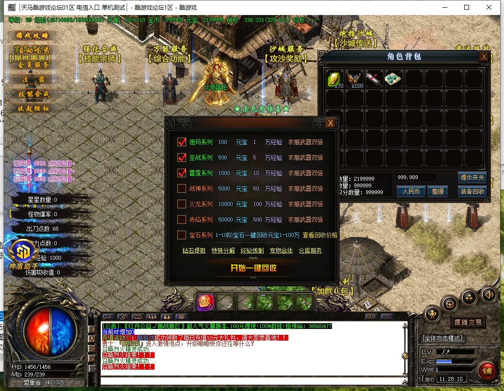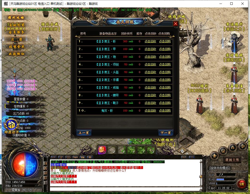 - 永久回收:高等级装备永久回收人民币,BOSS爆大量实物可回收!
