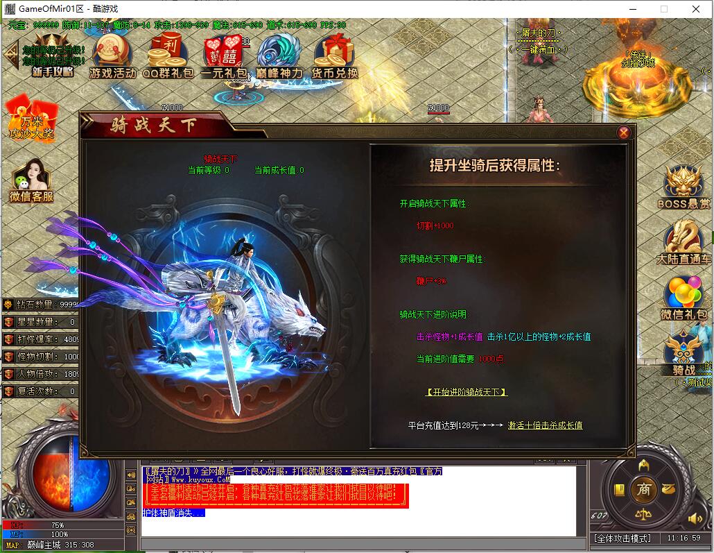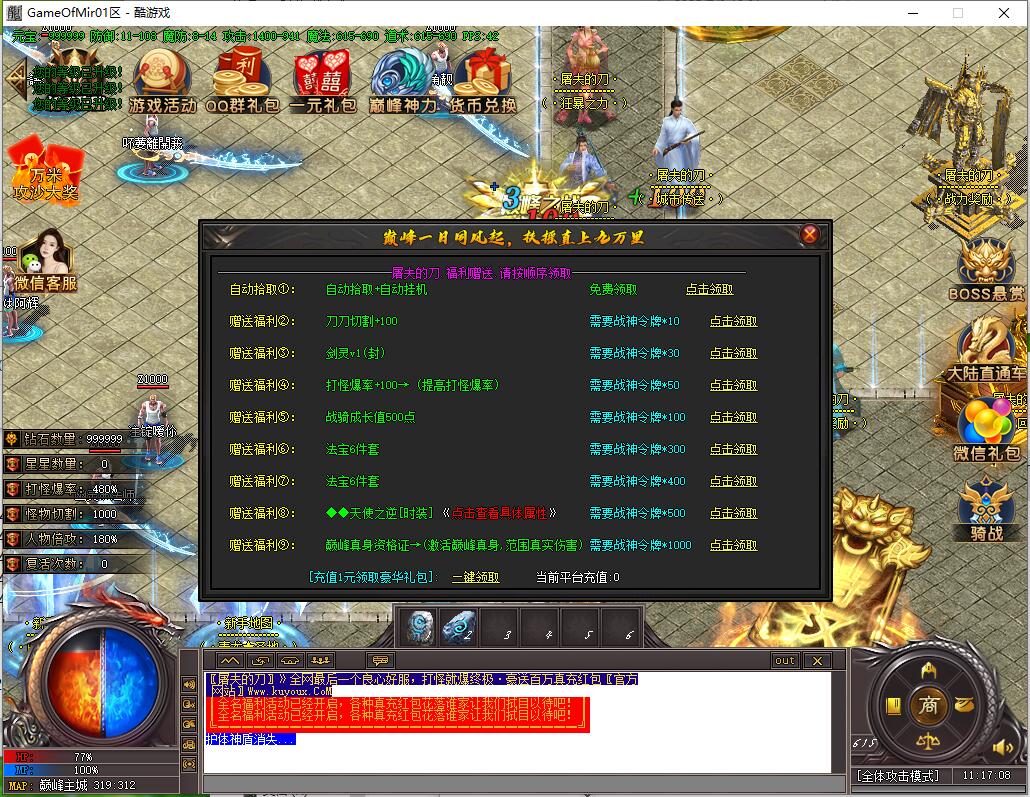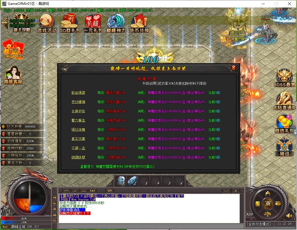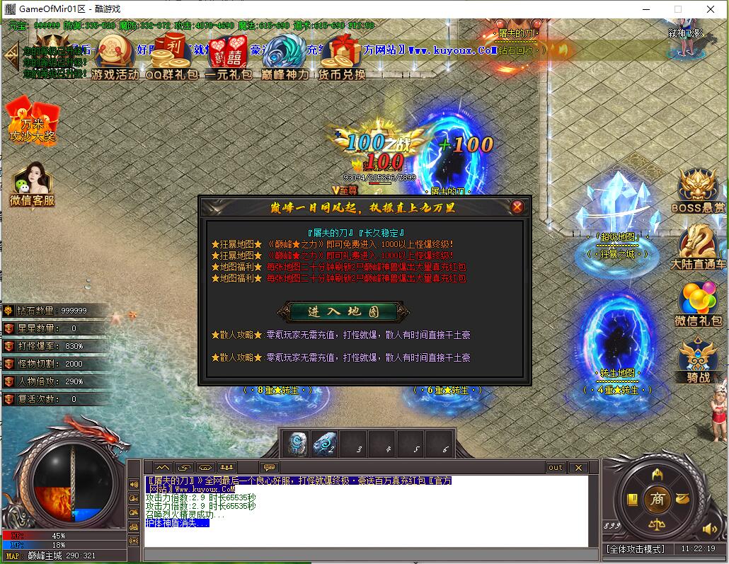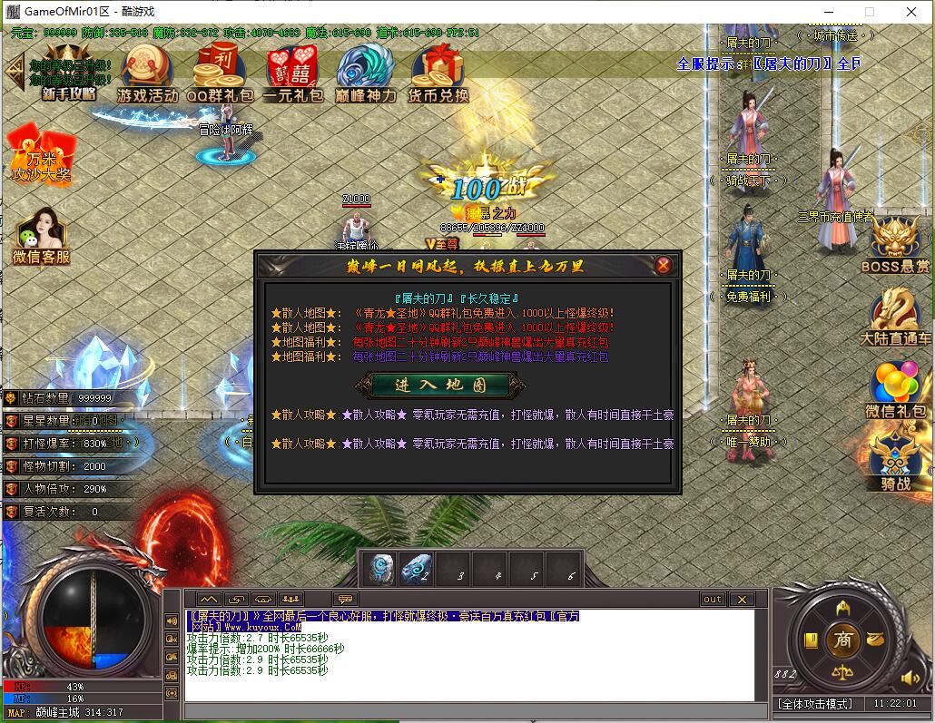 全民火龙单职业微变版本,纯散人服不花钱也可终极,一切靠打无合成,散人打金地图多怪物刷新速度快,装备货币保值,每日人品大爆发轻松300+收入。每天稳定四区开放(10:30 14:30 18:30 22:30),每个地图终极福利BOSS每晚22:01刷新,首区攻沙奖励RMB 588无封顶。市场最强封挂系统24小时接受举报,提醒设置二级密码防扫号。适度游戏益脑,拒绝盗版,享受健康生活。