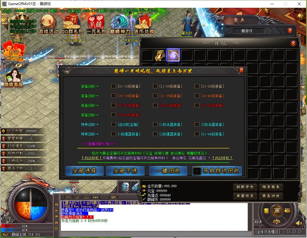本服还原干净聊天框,无垃圾信息及回收提示,商铺不售材料全靠打怪,永久回收物品均由怪物爆出。游戏问题可QQ群联系客服完美解答,无论是否消费均用心服务,所有玩家公平对待。交易安全需通过商铺RMB点交易,提现手续费仅10%;私下交易一经查实封号并清除提现记录;禁止自动刷屏、骂人小号占安全区,违者警告或封号;严禁加速脱机外挂,发现必删永不解封。