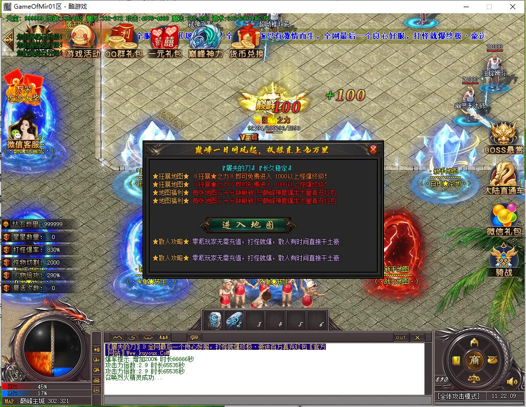 2024独家全新传奇版本,巨资推广专注人气聚集,充值比例1:1公平消费。每日五区滚动开放(10:30/13:30/16:30/19:30/22:30),新区火爆人气爆棚。全装备怪物爆率无保留,物品来源完全透明,公平爆装系统;重金定制GK反外挂系统,全面封禁外挂/加速/辅助,打造绿色公平环境。每日五区连开人气霸屏,次日合区第三天统一攻沙,激情PK体验。装备全靠野外爆出无商城售卖,投入时间可享爆装乐趣与收益;每日重金广告投放,主播平台+发布站全渠道推荐高人气保障。郑重声明:无充值比例/优惠不卖装备,公平无黑幕;防盗提示:不设二级密码保护账号安全谨防诈骗。