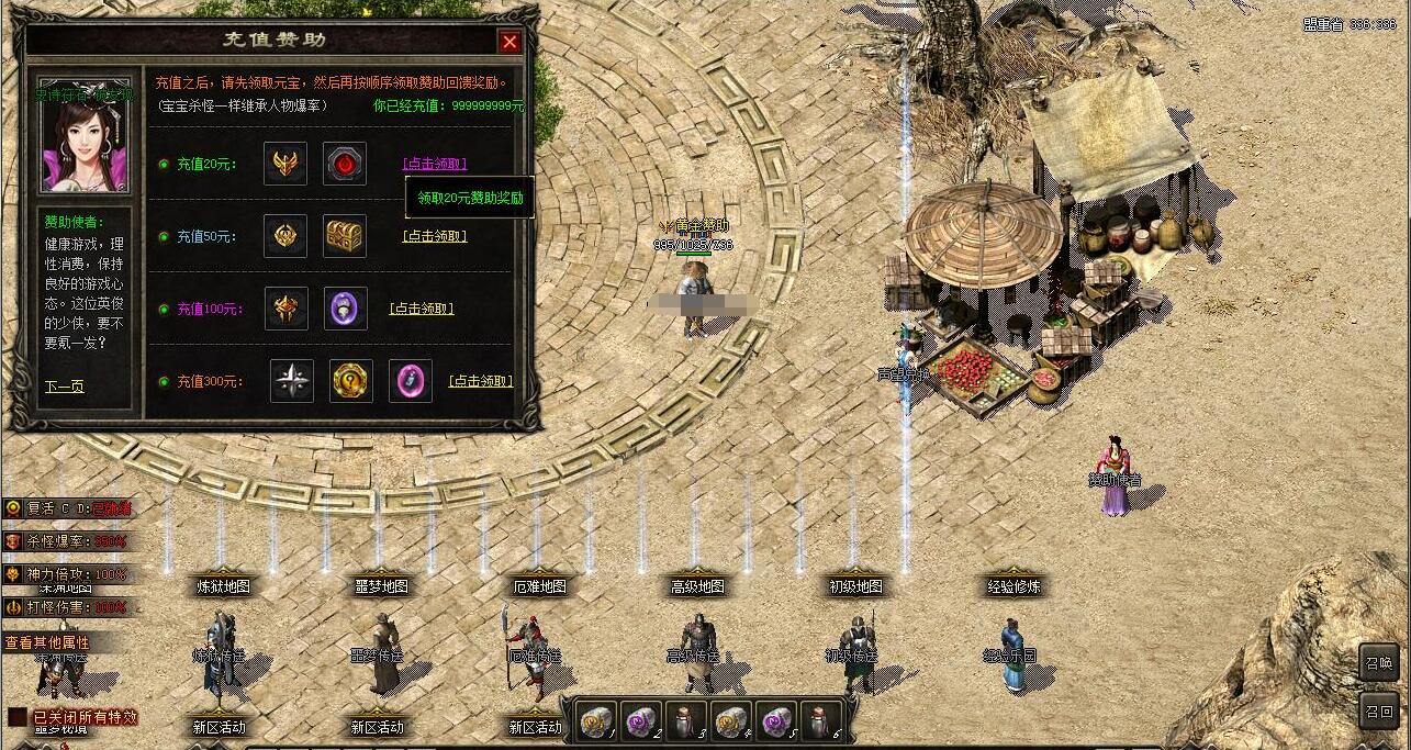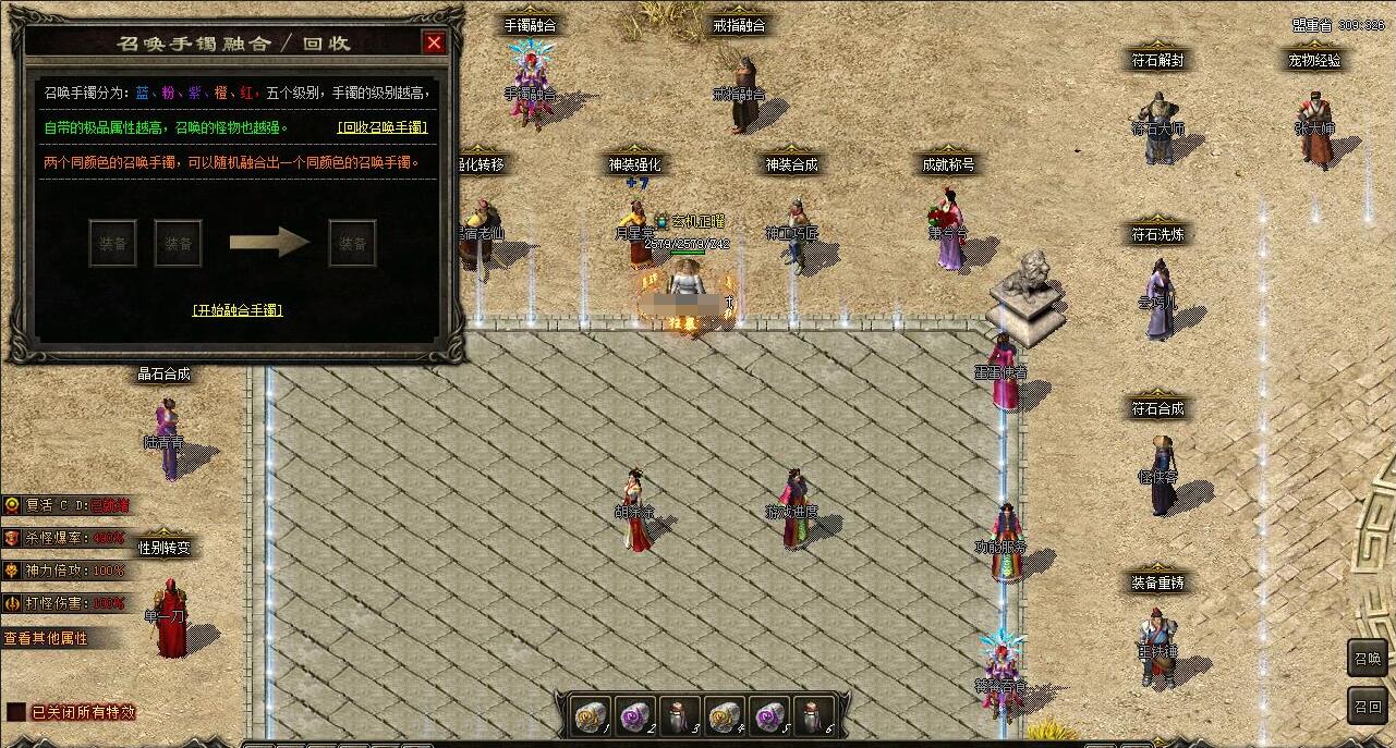 传奇游戏最新版本更新:新增智能挂机系统(入口位于综合服务内),优化所有怪物爆率(专属与材料爆率大幅提升),新增三个不爆物品,同步上线手写攻略(建议配合查询系统游玩,游戏难度适中)。增加元宝获取途径(杀怪即可获得元宝,适配后期高消耗需求),新增两个背包神器,调整金币获取规则(不同赞助等级对应不同获取量),金币回收倍率与赞助等级挂钩。修复3个剧情地图因不刷怪导致的中断问题,解决强化框不显示无法强化的故障,优化杀怪点变量及称号领取条件(一晚上可领完)。整理土城NPC布局(删除无用NPC,界面更整洁),新增GM可控真假爆率系统,优化人物初始攻速(非无限刀)。完成多处剧情地图问题修复与优化:赤沙龙城材料调整;剧情二四个NPC货币消耗、材料及概率优化(适配周服节奏);剧情三老者/尊者材料数量与成功率优化、老马猴/卖酒老头/定海神针合成修改、震天凯/穿针引线合成问题修复;云顶天宫进图条件调整,难度适当降低。
