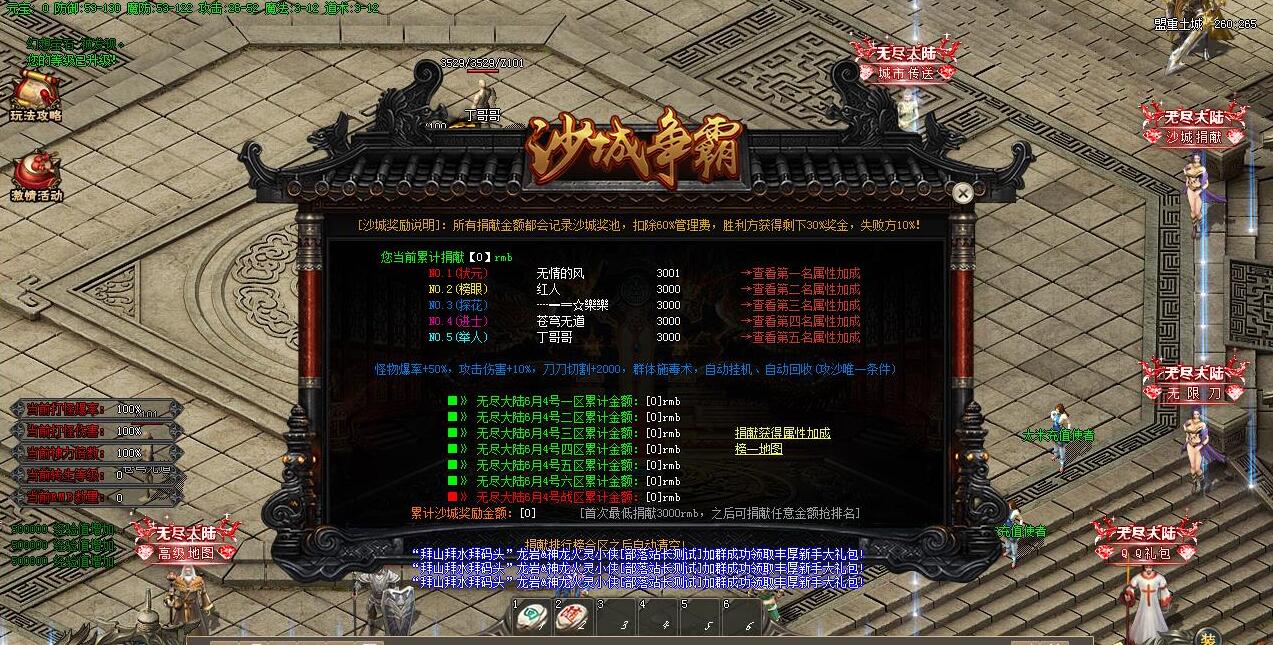 中资:满榜号 沙捐满榜一 100 加狂暴10 满回 10 攻速 31 聚宝盆 3 一共:160元