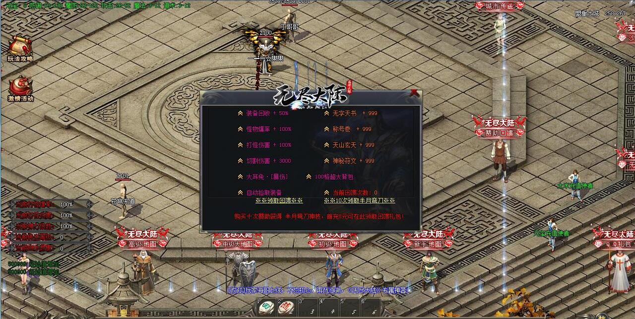 六芒星迷宫 怪物 一小时刷新30只:梦想大陆主宰者 专属装备:梦想大陆主宰者的令牌