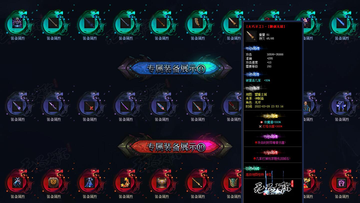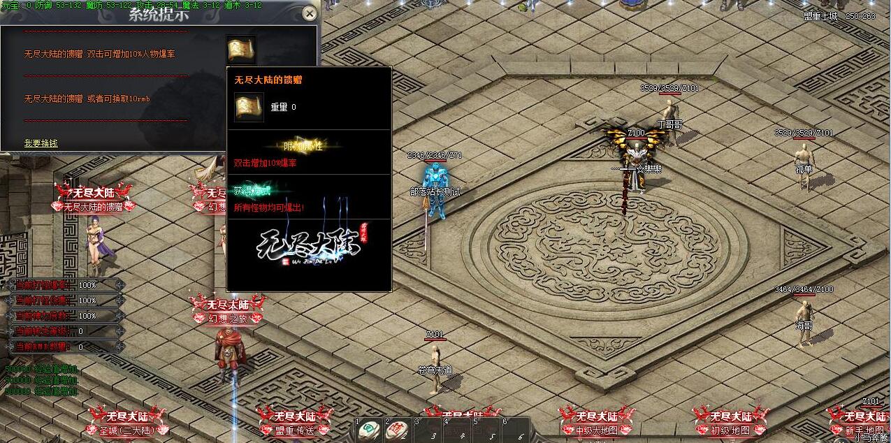 [金之印章]·【天选之人】物品: 放置背包生效: 打怪爆率+200% 1%的几率直接秒杀所在当前地图所有怪物(使所有怪物超级大爆)!