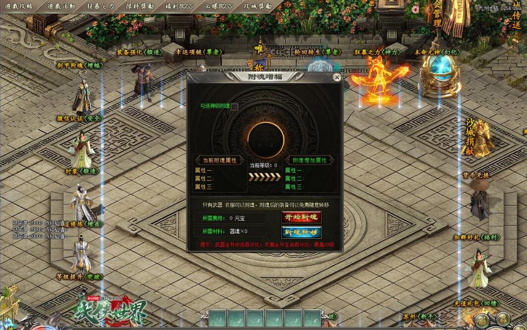 - 剑甲附魂:提升武器百分比攻击,衣服百分比生命,中后期必备。