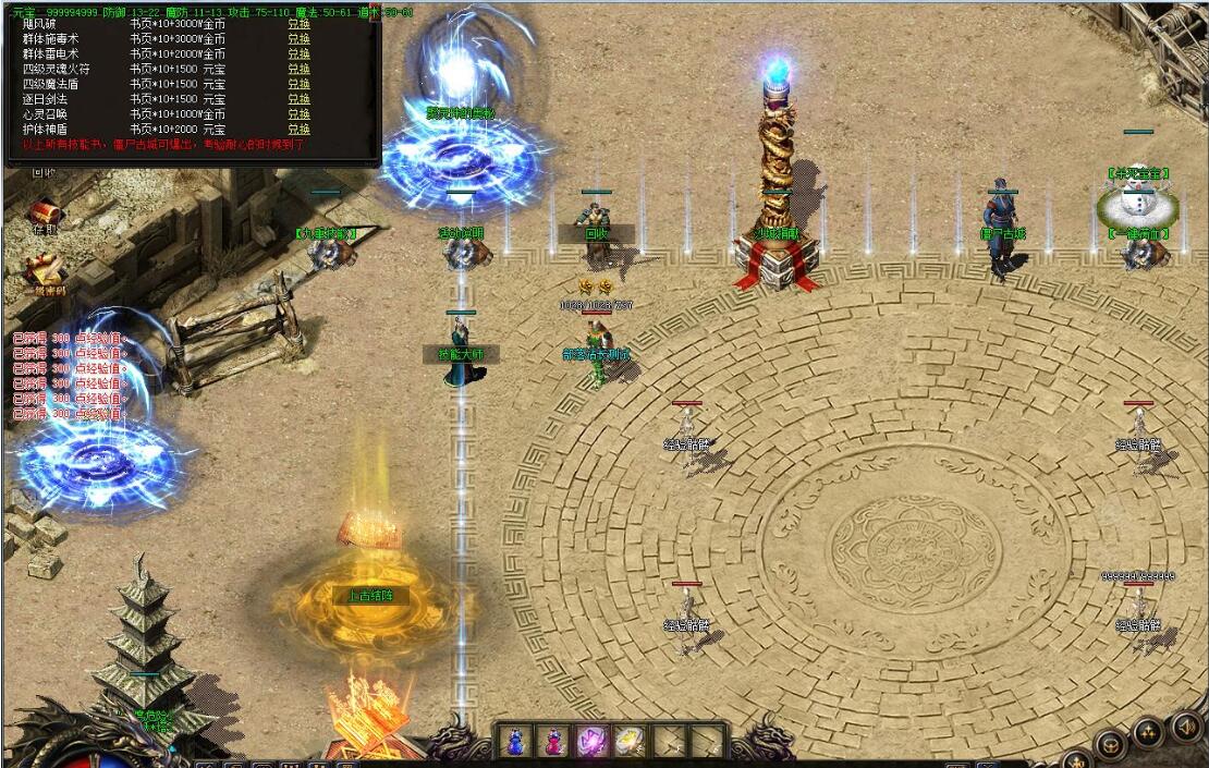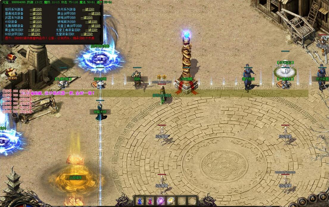土城传送员分为初级区域-终极区域-高级区域,根据等级进入。通天塔专爆荣誉卷,最后一层BOSS几率爆专属破棺武器,武器可鞭尸。土城左方卧龙村为二大路,打高级装备的好地方,卧龙村内有三只高级BOSS,3小时刷新一次。