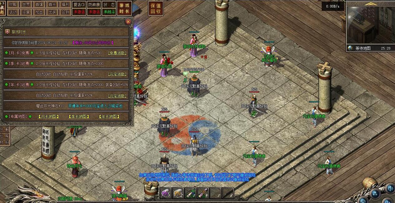 上线领取Q群礼包和微信礼包后,开通年卡或季卡会员,获得自动捡取、自动回收、杀怪爆率、杀怪经验、随身泡点、装备回收加成等福利。同时进入季/年卡专属地图,BOSS打到你手软。商城购买本职业宝宝技能书,前期发展更高效。