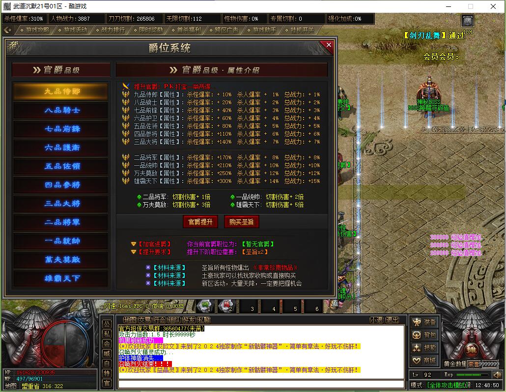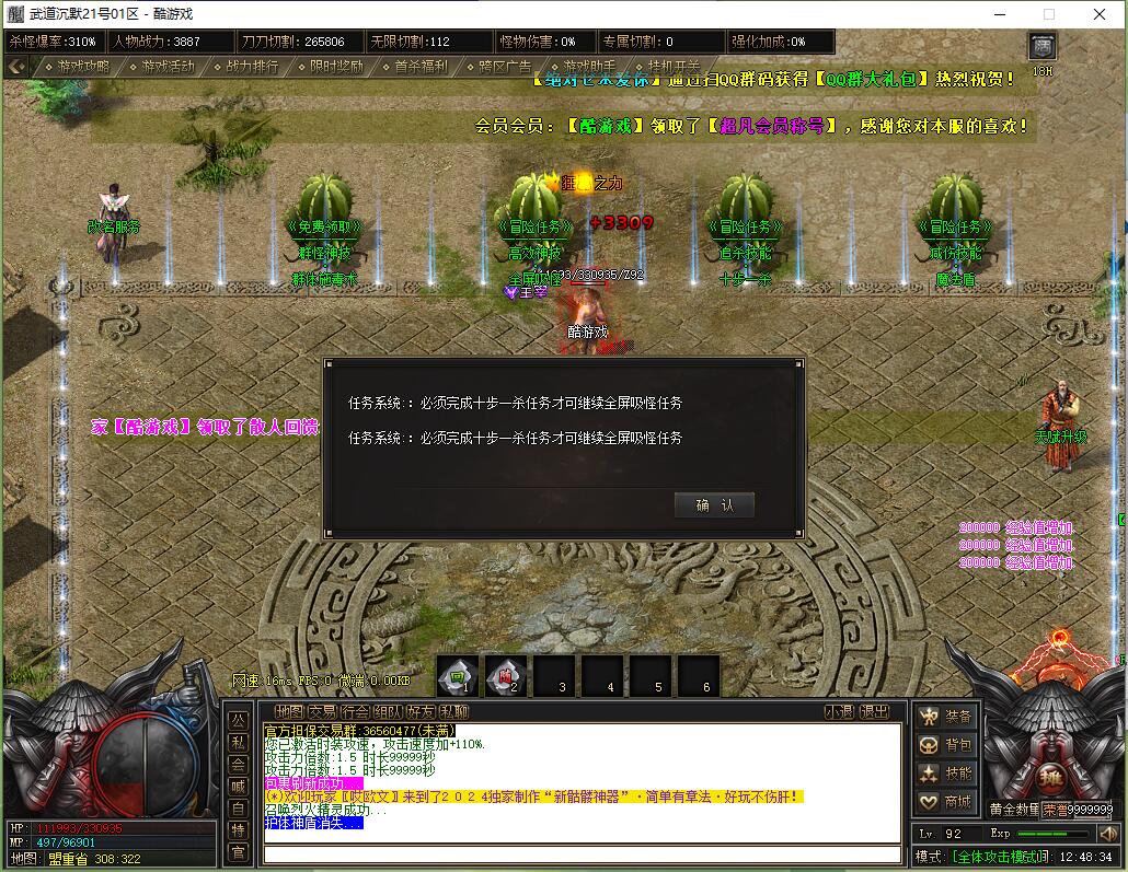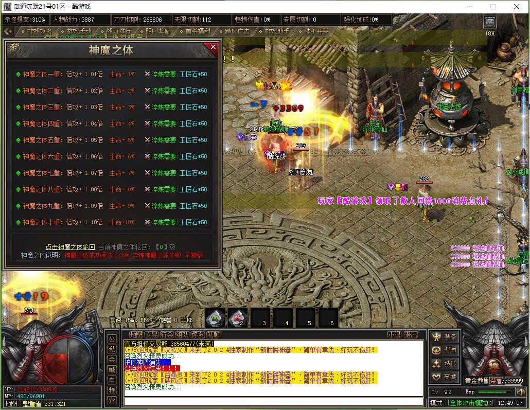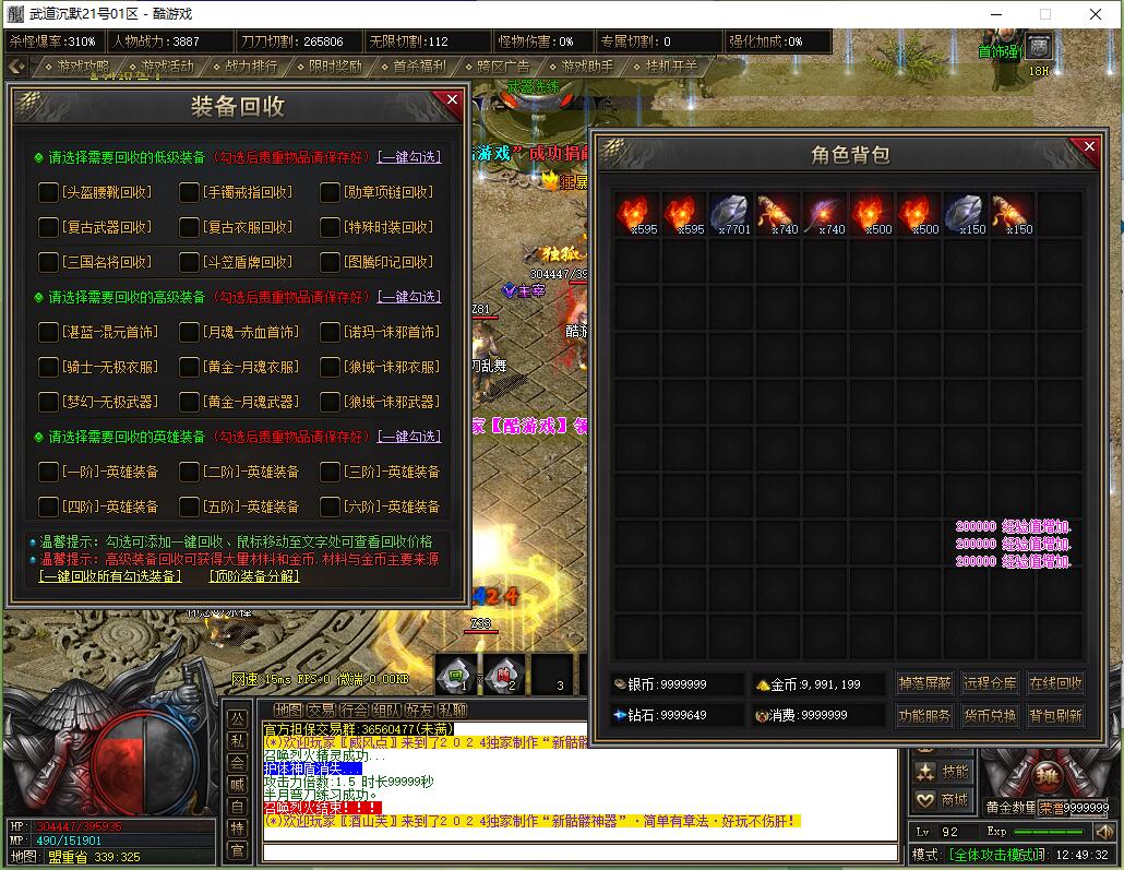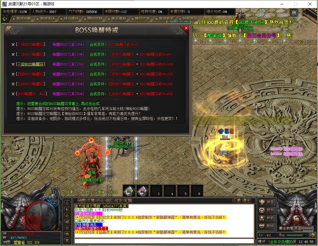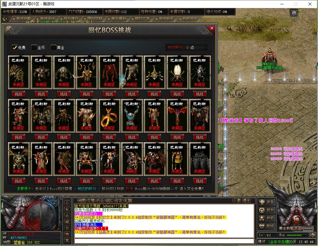 本服还原干净聊天框,无垃圾信息及回收提示,商铺不售材料全靠打怪,永久回收物品均由怪物爆出。游戏问题可QQ群联系客服完美解答,无论是否消费均用心服务,所有玩家公平对待。交易安全需通过商铺RMB点交易,提现手续费仅10%;私下交易一经查实封号并清除提现记录;禁止自动刷屏、骂人小号占安全区,违者警告或封号;严禁加速脱机外挂,发现必删永不解封。