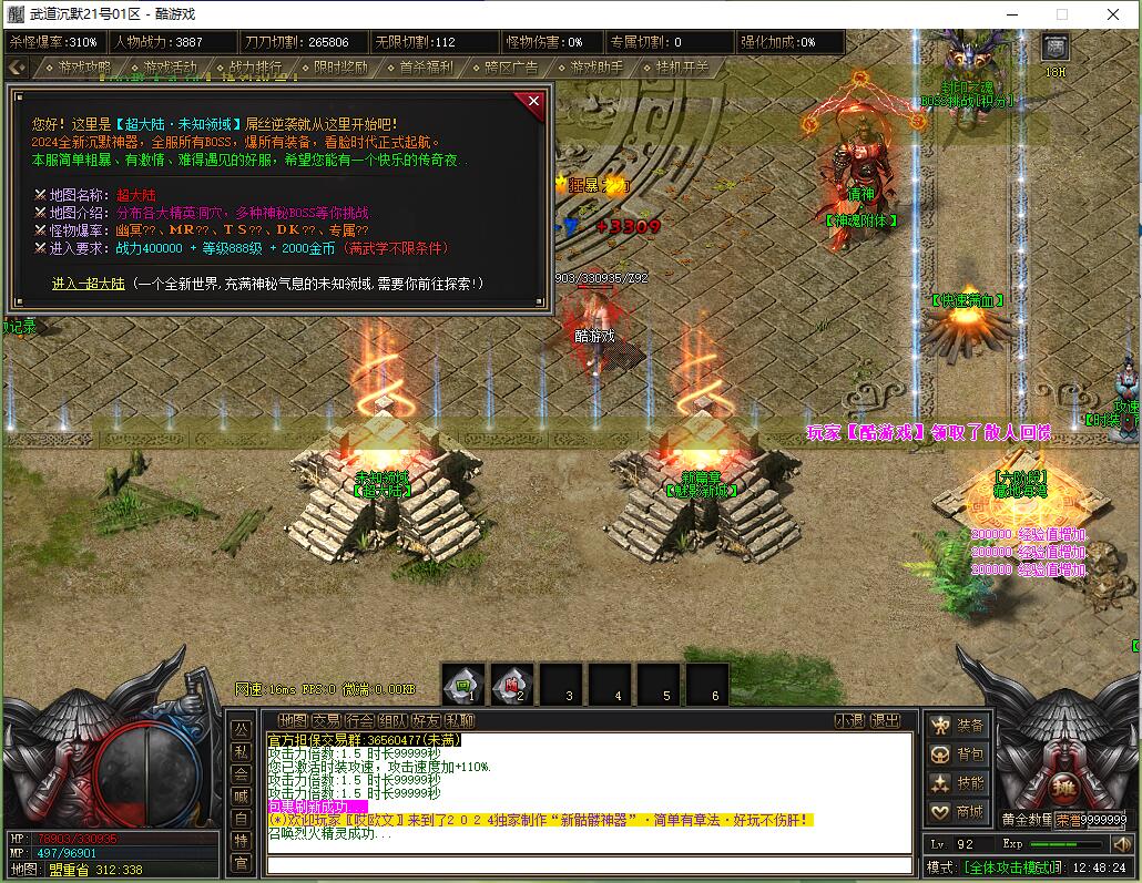 2024年龍帝苍月篇★复古独家单职业沥血巨制,每天7个新区开放(0点、10点、13点、15点、18点、20点、22点),1元=100000元宝+100荣誉+1000龍币+1充值点,无合成所有装备全靠打,装备材料全爆让时间更值钱,新服合区后攻城晚上统一拿沙奖励千元RMB,万元封挂网关严惩外挂,六年老品牌长期良心服,老板玩家都能激情玩!