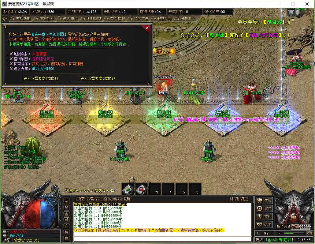 2024独家全新传奇版本,巨资推广专注人气聚集,充值比例1:1公平消费。每日五区滚动开放(10:30/13:30/16:30/19:30/22:30),新区火爆人气爆棚。全装备怪物爆率无保留,物品来源完全透明,公平爆装系统;重金定制GK反外挂系统,全面封禁外挂/加速/辅助,打造绿色公平环境。每日五区连开人气霸屏,次日合区第三天统一攻沙,激情PK体验。装备全靠野外爆出无商城售卖,投入时间可享爆装乐趣与收益;每日重金广告投放,主播平台+发布站全渠道推荐高人气保障。郑重声明:无充值比例/优惠不卖装备,公平无黑幕;防盗提示:不设二级密码保护账号安全谨防诈骗。
