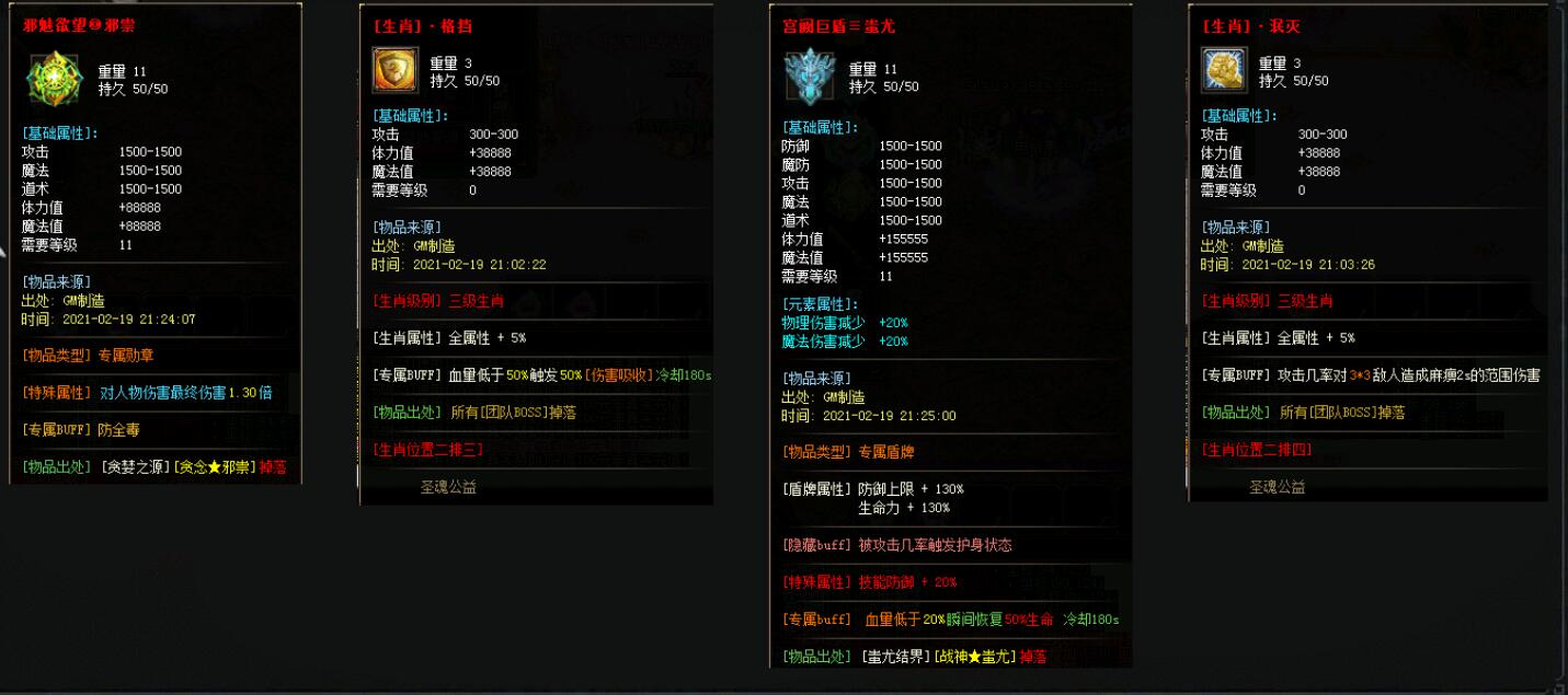 - 兽神●饕鬄:专属特殊、次终极剑甲、三级生肖、神级技能书