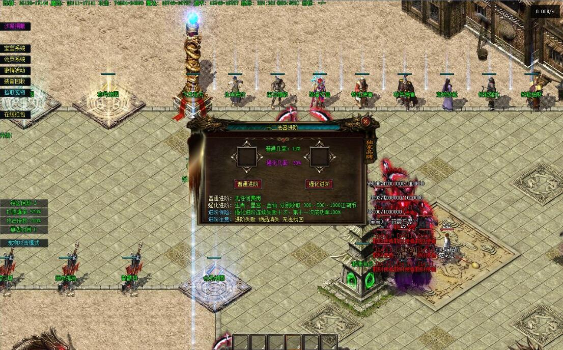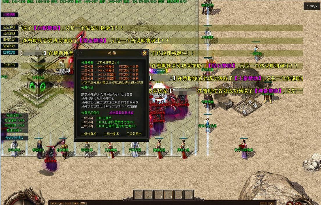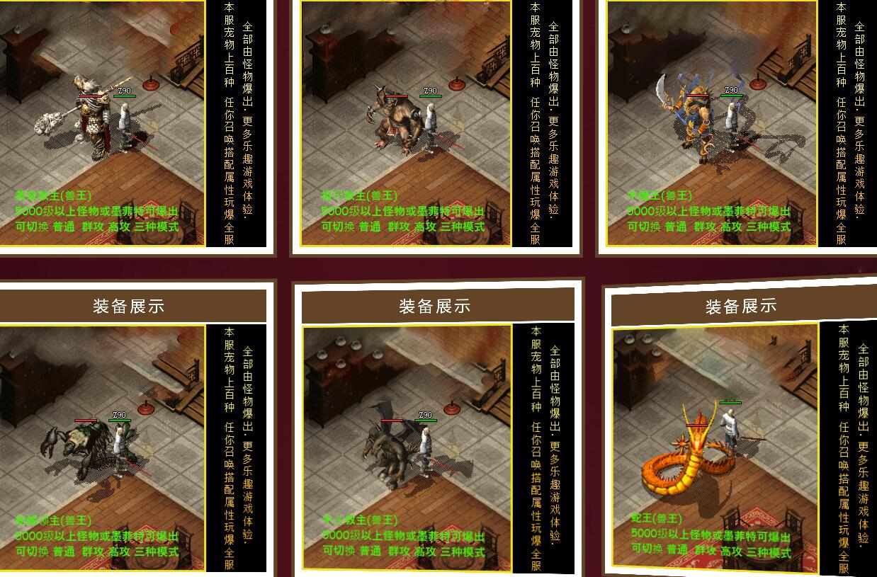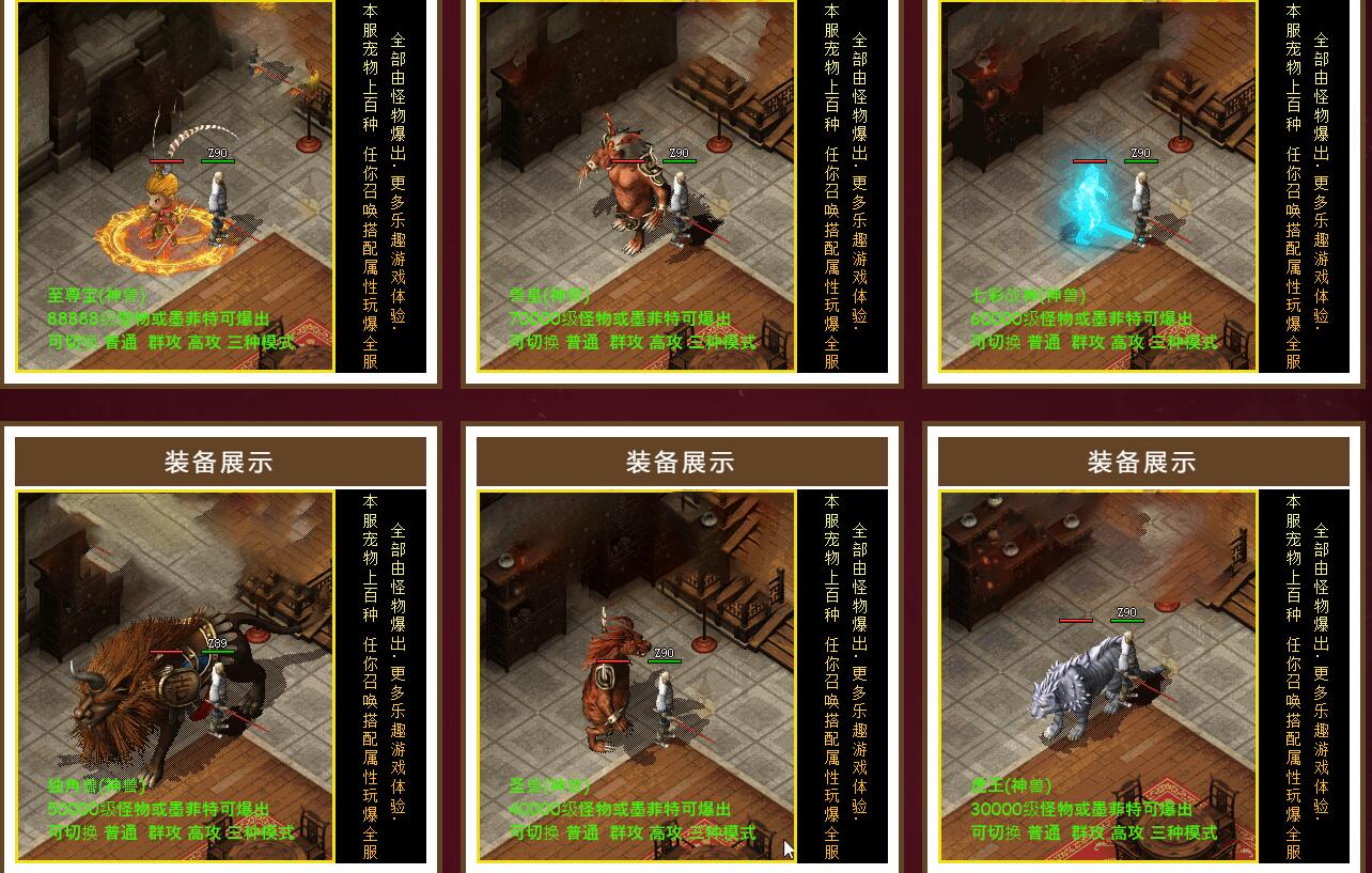 1.宝宝功能:优化宝宝功能!直接分为宝宝、灵兽、兽王、仙兽、神兽五个级别!但每个级别的宠物也有强有弱,所有的宠物游戏里均可爆出!