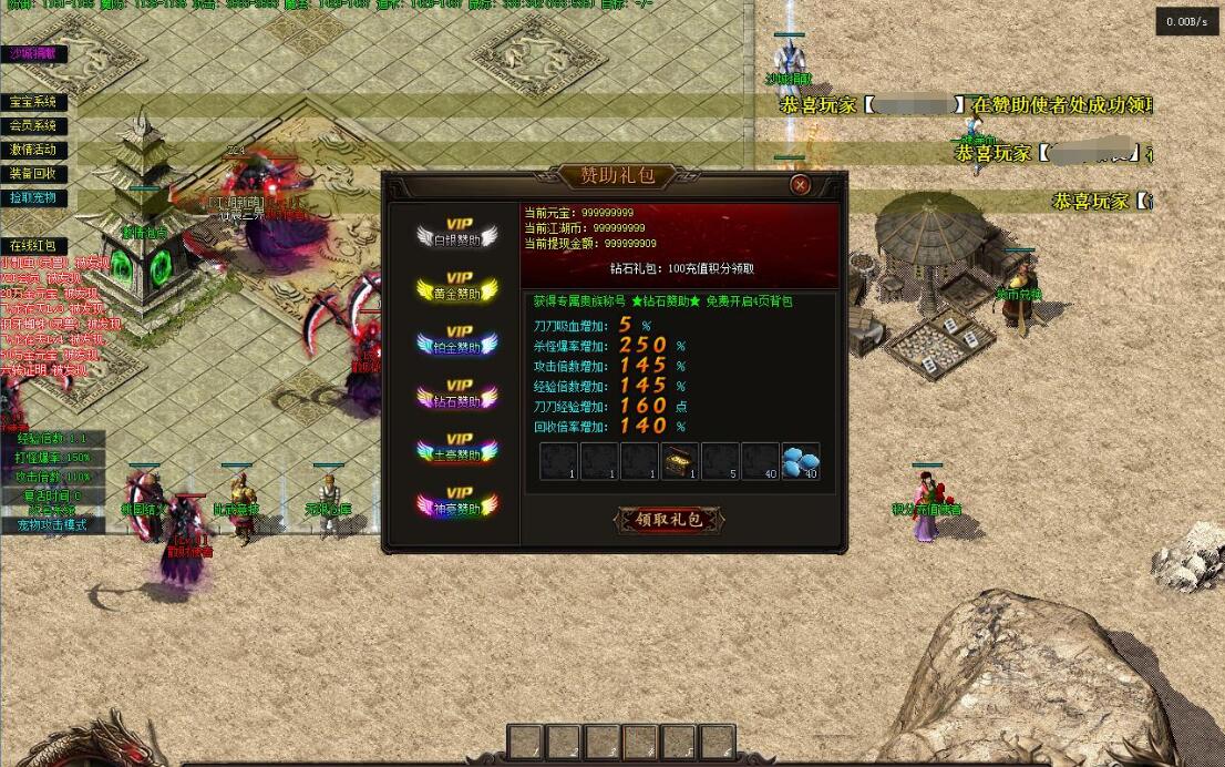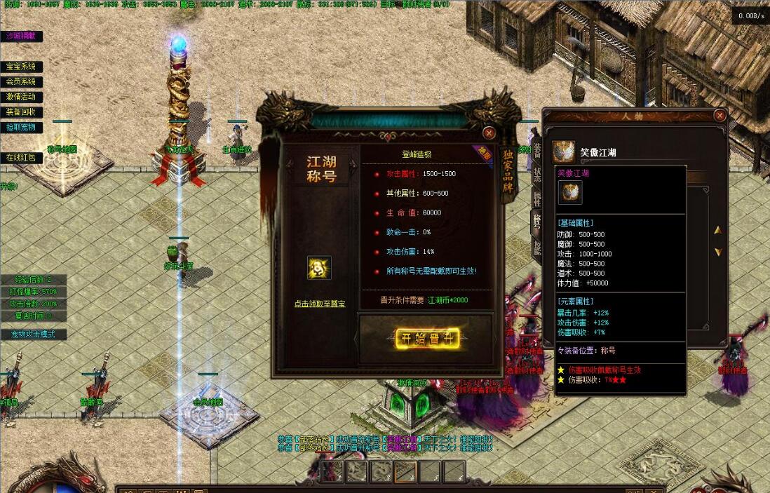 9.等级介绍:本服没有等级丹!唯一的升级途径为打怪升级!升级需求经验不多!如果有多倍经验相助升级则飞一样,安全区就不需要挂机了,大家都出去升级吧!