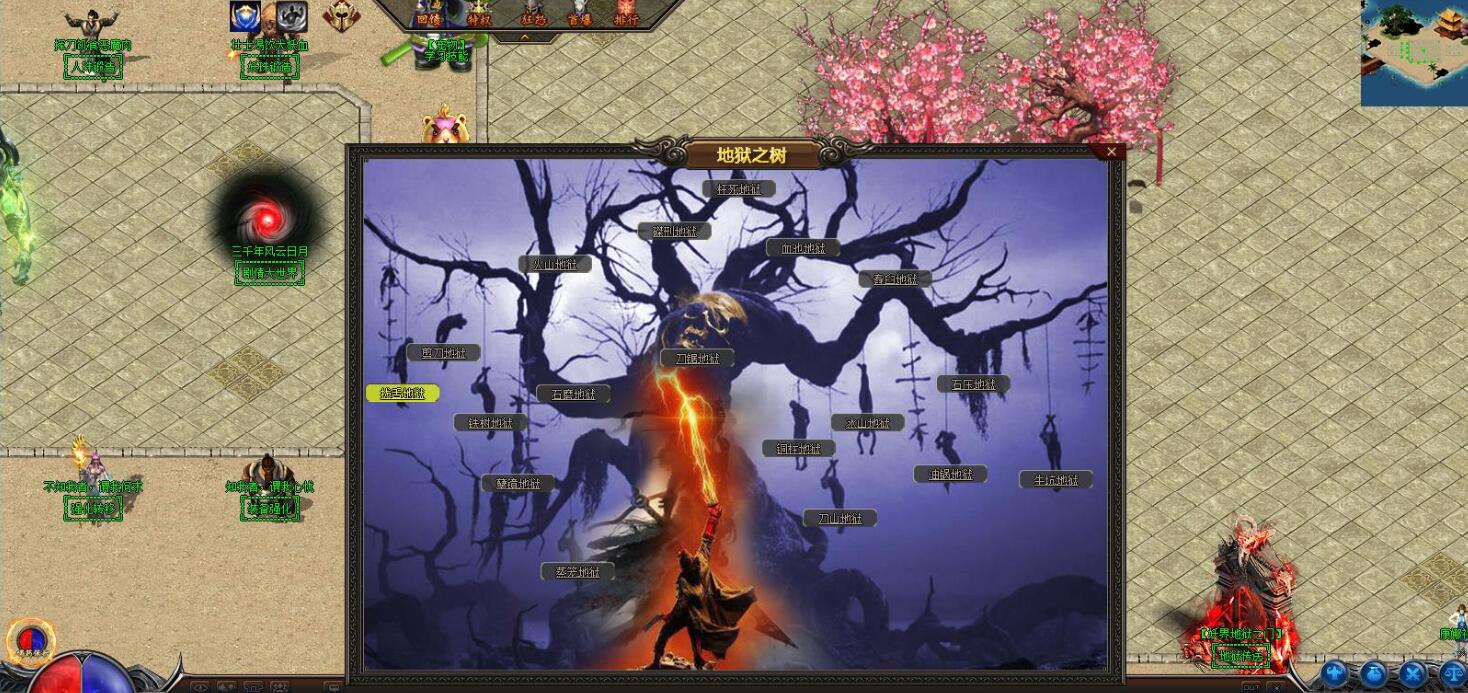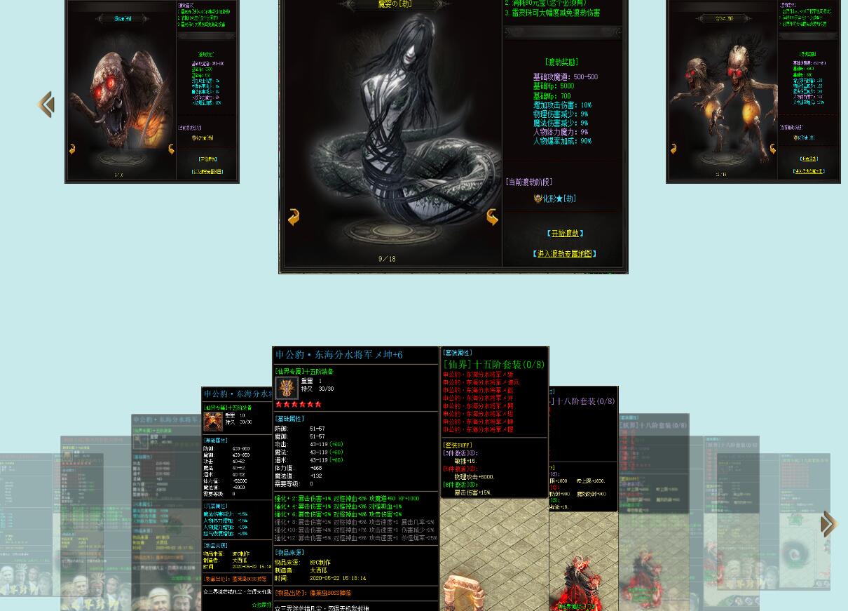 - 活动地图:实力提升后,通过【活动使者】进入活动地图。击败BOSS获取信物,解锁域外篇章。活动地图城墙上有两个NPC:长生老人引导到[复活之域],获取复活装备;地狱头陀引导到[妖魔世界],获取雷灵珠[神]、妖丹等特殊装备。
