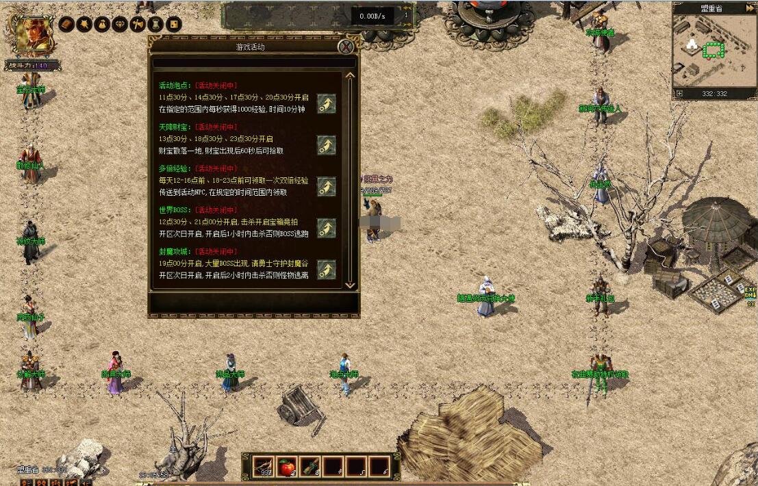 石墓阵\石墓阵_武器D71650 23 27武器店老板 0 0 0石墓阵\石墓阵_衣服D71651 23 27 服装店老板 0 7 0石墓阵\石墓阵_药店 D71653 23 27 药品店老板 0 3 0石墓阵\石墓阵_首饰 D71652 23 27 首饰店老板 0 5 0;白日门白日门/妇女11203321妇女023000白日门\白日门_武器 1001 14 12 武器店老板 0 15 0白日门\白日门_杂货 1007 11 14 杂货店老板 0 17 0白日门\白日门_首饰 1005 9 11 首饰店老板 0 20 0白日门\白日门_服装 1003 13 16 服装店老板 0 23 0白日门\白日门_毒药 1006 9 10 药店老板 0 22 0白日门\白日门_药店 1006 12 7 药剂师 0 25 0白日门\白日门_书店 1004 9 11 书店老板 0 18 0白日门\白日门_仓库 11 184 296 仓库保管员 0 6 0白日门\斗笠大师 11 174 318 斗笠大师 0 202 0白日门\白日门_学员11179309武术学员0190 0白日门\白日门_学员11181311武术学员0190 0白日门\白日门_学员11179313武术学员0190 0白日门\白日门_学员11177311武术学员0190 0白日门\白日门_学员11175313武术学员0190 0白日门\白日门_学员11177315武术学员0190 0白日门\白日门_教头11182308武术教头0160 0白日门\白日门_学员11191329道术学员0210 0白日门\白日门_学员11189327道术学员0210 0白日门\白日门_学员11191325道术学员0210 0白日门\白日门_学员11193327道术学员0210 0白日门\白日门_学员11195325道术学员0210 0白日门\白日门_学员11193323道术学员0210 0白日门\白日门_教头11196322道术教头0240 0;封魔封魔谷\封魔谷_教主 b341 17 22 封魔谷\封魔谷主 0 16 0封魔谷\封魔谷_杂货 4 255 224恶魔杂货匠 0 17 0封魔谷\封魔谷_屠夫 4 243 187恶魔屠夫 0 11 0封魔谷\封魔谷_铁匠 4 227 223 恶魔铁匠 0 0 0封魔谷\封魔谷_首饰 b344 13 10 恶魔首饰店老板 0 7 0封魔谷\封魔谷_保管 b347 9 10 恶魔保管员 0 6 0封魔谷\封魔谷_衣服b345 12 10 恶魔布店老板 0 7 0封魔谷\封魔谷_学者 b343 5 18 恶魔学者 0 2 0封魔谷\封魔谷_练药 b343 15 9 恶魔炼药师 0 9 0封魔谷\封魔谷_药店 b343 9 13 恶魔药剂师 0 4 0封魔谷\封魔谷_铁匠 b342 14 7 恶魔铁匠铺老板 0 0 0封魔谷\封魔谷_老人 4 262 246 恶魔老人 0 9 0封魔谷\封魔谷_修理 d2008 31 24 恶魔修理师 0 0 0封魔谷\封魔军官 4 240 192 封魔军官 0 31 0;月崕岛苍月岛\苍月岛_杂货 5 137 313 杂货铺老板 0 3 0苍月岛\苍月岛_书店 5 155 298 书店老板 0 2 0苍月岛\苍月岛_武器 5 127 306 武器店老板 0 1 0苍月岛\苍月岛_首饰 5 155 339 首饰店老板 0 5 0苍月岛\苍月岛_衣服 5 147 328 服装店老板 0 7 0苍月岛\苍月岛_保管 5 126 331 仓库保管员 0 6 0苍月岛\苍月岛_药店 5 148 352 药铺老板 0 1 0苍月岛\无名老人 5 122 328 无名老人 0 24 0;洞穴NPC洞穴\洞穴_仓库 D002 174 216 仓库保管员0 3 0洞穴\洞穴_商贩 DM001 4 6 商贩 0 9 0洞穴\洞穴_小贩 DM011 4 6 商贩 0 9 0洞穴\蜈蚣洞_衣服 D608 30 22 服装小贩 0 3 0洞穴\药品小贩 D5063 62 36 药品小贩 0 1 0洞穴\会议厅传送员 D515 29 15 会议厅传送员 0 1 0洞穴\决战场传送员 D505 121 9 决战场传送员 0 1 0洞穴\惊寂 T0009 48 42 惊寂 0 14 0洞穴\一层东传送员 D402 100 100 一层东传送员 0 1 0洞穴\一层西传送员 D405 60 18 一层西传送员 0 1 0洞穴\蚁后巢穴看门人 M998 12 11 蚁后巢穴看门人 0 20 0洞穴\地魔 T0004 102 89 地魔 0 14 0洞穴\相思女 T0005 123 74 相思女 0 12 0;桃园桃源门\桃源门_老人 T0002 21 83 神秘老人 0 9 0桃源门\桃源门_技师 T0002 53 115 合成师 0 15 0;绝望谷魔龙城/魔龙城_杂货店绝望谷 152 175杂货店 0 17 0 0 0魔龙城/魔龙城_药店绝望谷 124 194药店 0 22 0 0 0魔龙城/魔龙城_武器店绝望谷 141 178武器店 0 29 0 0 0魔龙城/魔龙城_首饰店绝望谷 116 208首饰店 0 20 0 0 0魔龙城/魔龙城_服装店绝望谷 129 207服装店 0 20 0 0 0石墓阵\石墓阵_武器D71650 23 27武器店老板 0 0 0石墓阵\石墓阵_衣服D71651 23 27 服装店老板 0 7 0石墓阵\石墓阵_药店 D71653 23 27 药品店老板 0 3 0石墓阵\石墓阵_首饰 D71652 23 27 首饰店老板 0 5 0;白日门白日门/妇女11203321妇女023000白日门\白日门_武器 1001 14 12 武器店老板 0 15 0白日门\白日门_杂货 1007 11 14 杂货店老板 0 17 0白日门\白日门_首饰 1005 9 11 首饰店老板 0 20 0白日门\白日门_服装 1003 13 16 服装店老板 0 23 0白日门\白日门_毒药 1006 9 10 药店老板 0 22 0白日门\白日门_药店 1006 12 7 药剂师 0 25 0白日门\白日门_书店 1004 9 11 书店老板 0 18 0白日门\白日门_仓库 11 184 296 仓库保管员 0 6 0白日门\斗笠大师 11 174 318 斗笠大师 0 202 0白日门\白日门_学员11179309武术学员0190 0白日门\白日门_学员11181311武术学员0190 0白日门\白日门_学员11179313武术学员0190 0白日门\白日门_学员11177311武术学员0190 0白日门\白日门_学员11175313武术学员0190 0白日门\白日门_学员11177315武术学员0190 0白日门\白日门_教头11182308武术教头0160 0白日门\白日门_学员11191329道术学员0210 0白日门\白日门_学员11189327道术学员0210 0白日门\白日门_学员11191325道术学员0210 0白日门\白日门_学员11193327道术学员0210 0白日门\白日门_学员11195325道术学员0210 0白日门\白日门_学员11193323道术学员0210 0白日门\白日门_教头11196322道术教头0240 0;封魔封魔谷\封魔谷_教主 b341 17 22 封魔谷\封魔谷主 0 16 0封魔谷\封魔谷_杂货 4 255 224恶魔杂货匠 0 17 0封魔谷\封魔谷_屠夫 4 243 187恶魔屠夫 0 11 0封魔谷\封魔谷_铁匠 4 227 223 恶魔铁匠 0 0 0封魔谷\封魔谷_首饰 b344 13 10 恶魔首饰店老板 0 7 0封魔谷\封魔谷_保管 b347 9 10 恶魔保管员 0 6 0封魔谷\封魔谷_衣服b345 12 10 恶魔布店老板 0 7 0封魔谷\封魔谷_学者 b343 5 18 恶魔学者 0 2 0封魔谷\封魔谷